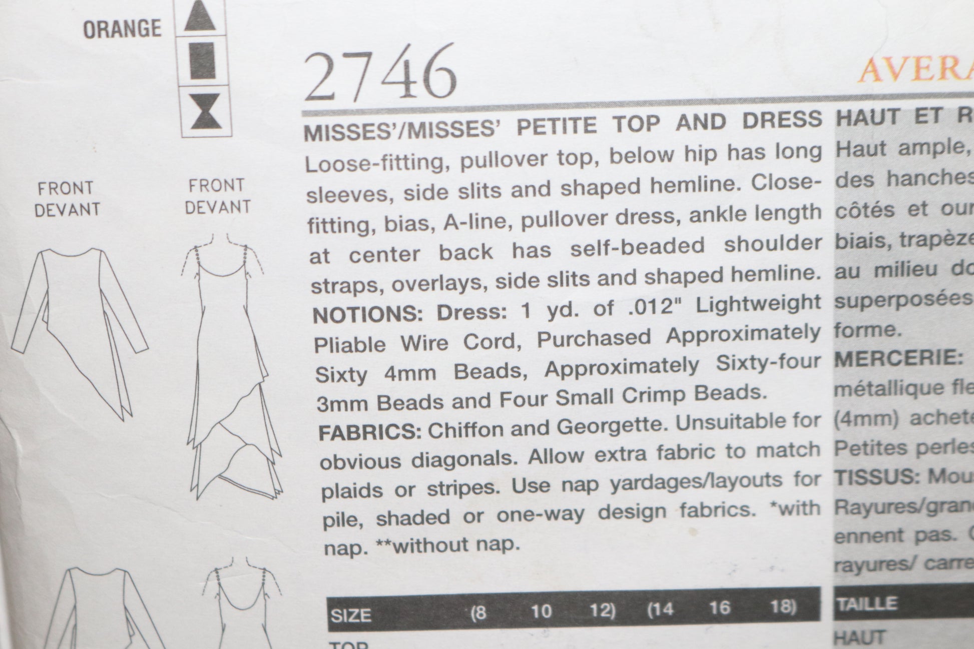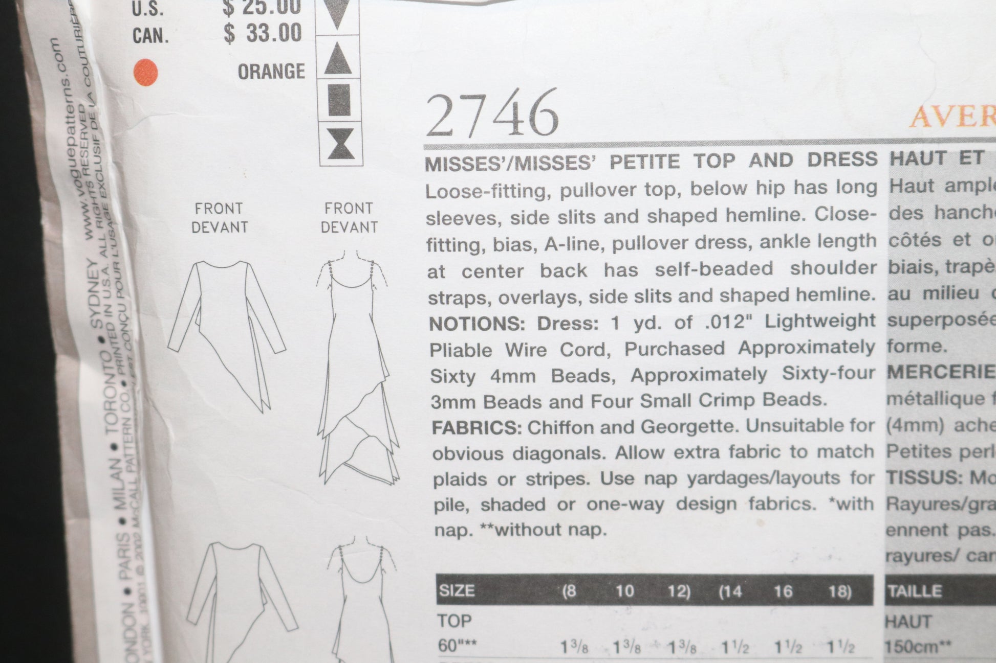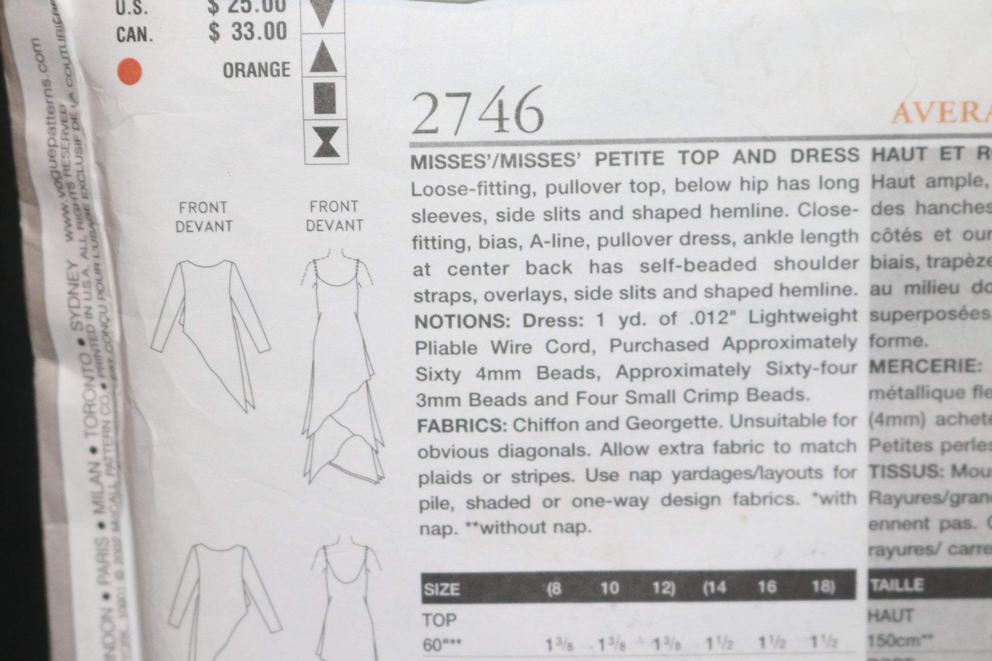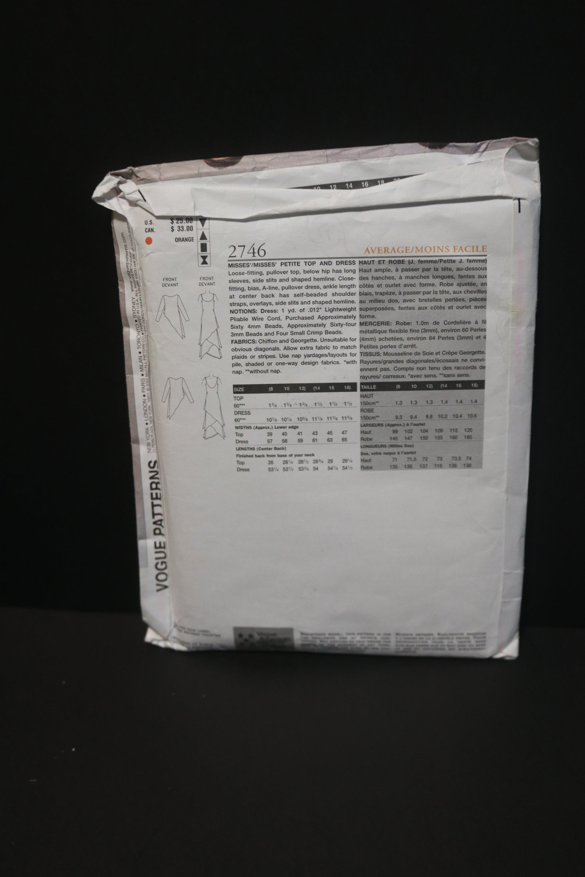 Vogue 2746 Tom and Linda Platt Misses / Miss Petite Top and Dress Sewing Pattern - UNCUT - Size 14 16 18