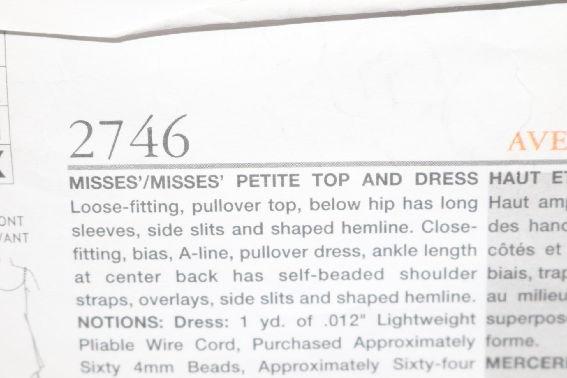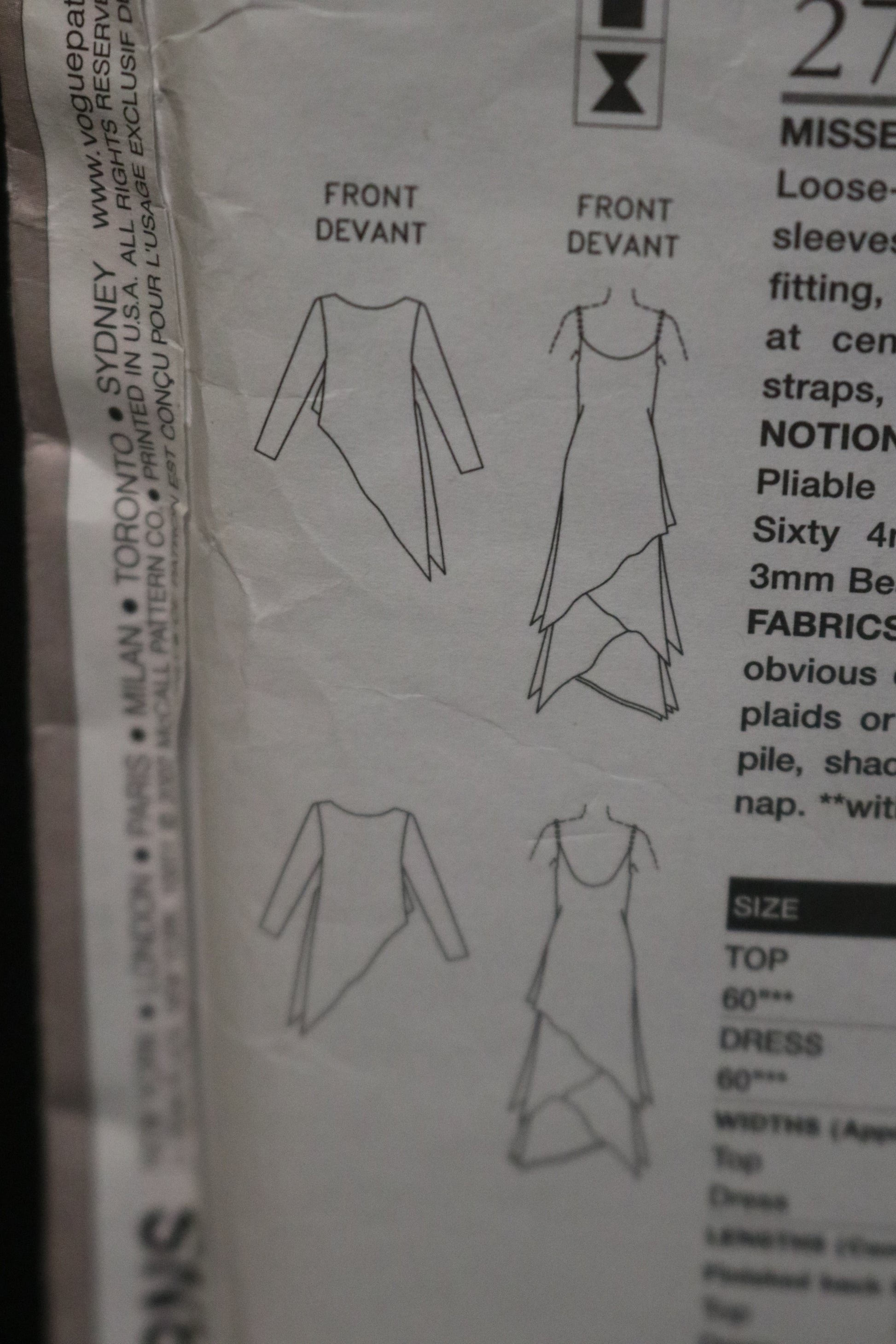 Vogue 2746 Tom and Linda Platt Misses / Miss Petite Top and Dress Sewing Pattern