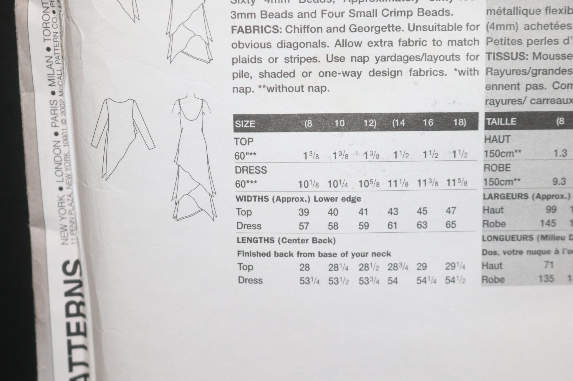 Loose fitting pullover top, below hip has long sleeves, side slits and shaped hemline. Close fitting, bias, A-line, pullover dress, ankle length at center back has self beaded shoulder straps, overlays, side slits and shaped hemline.