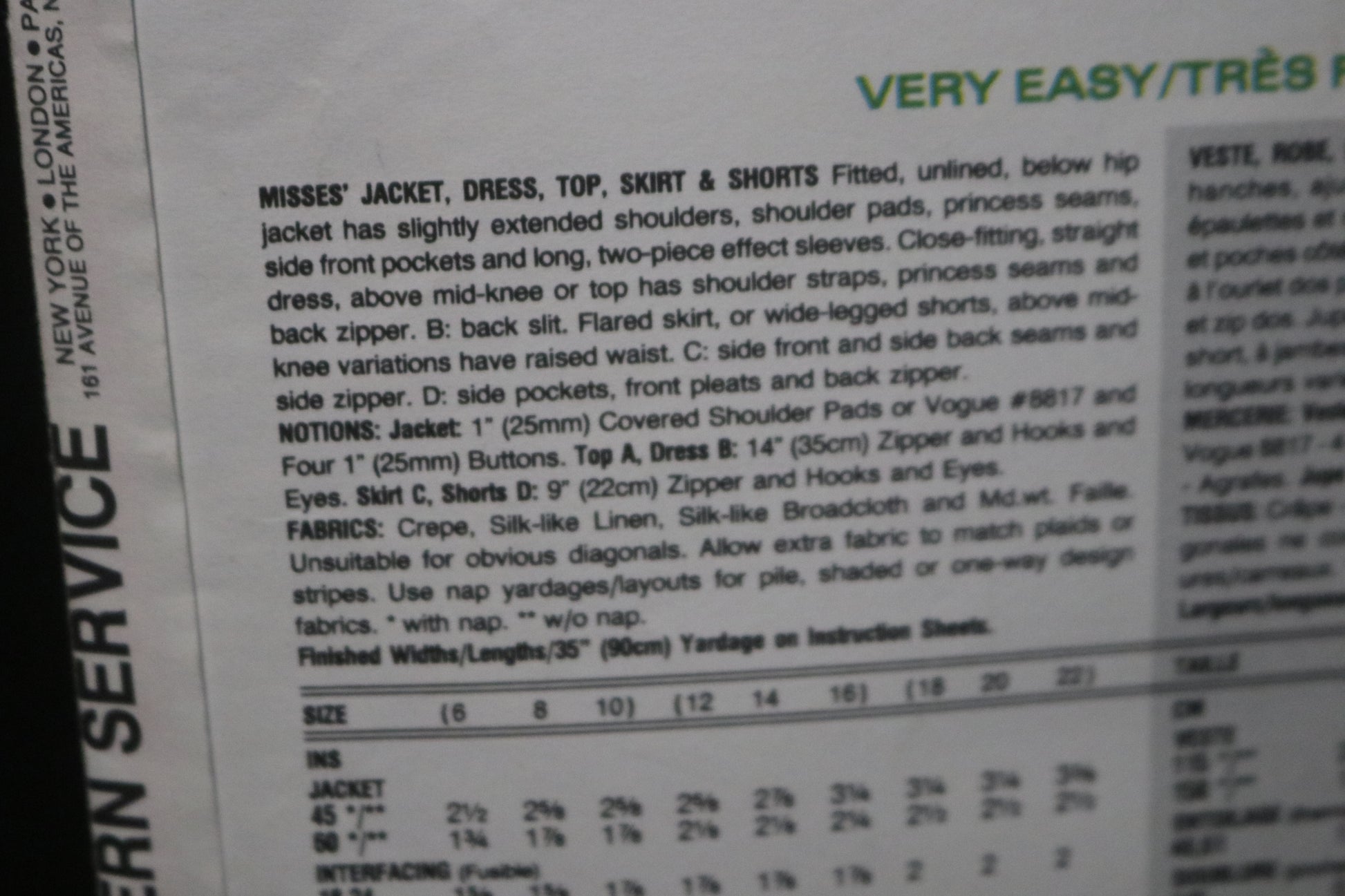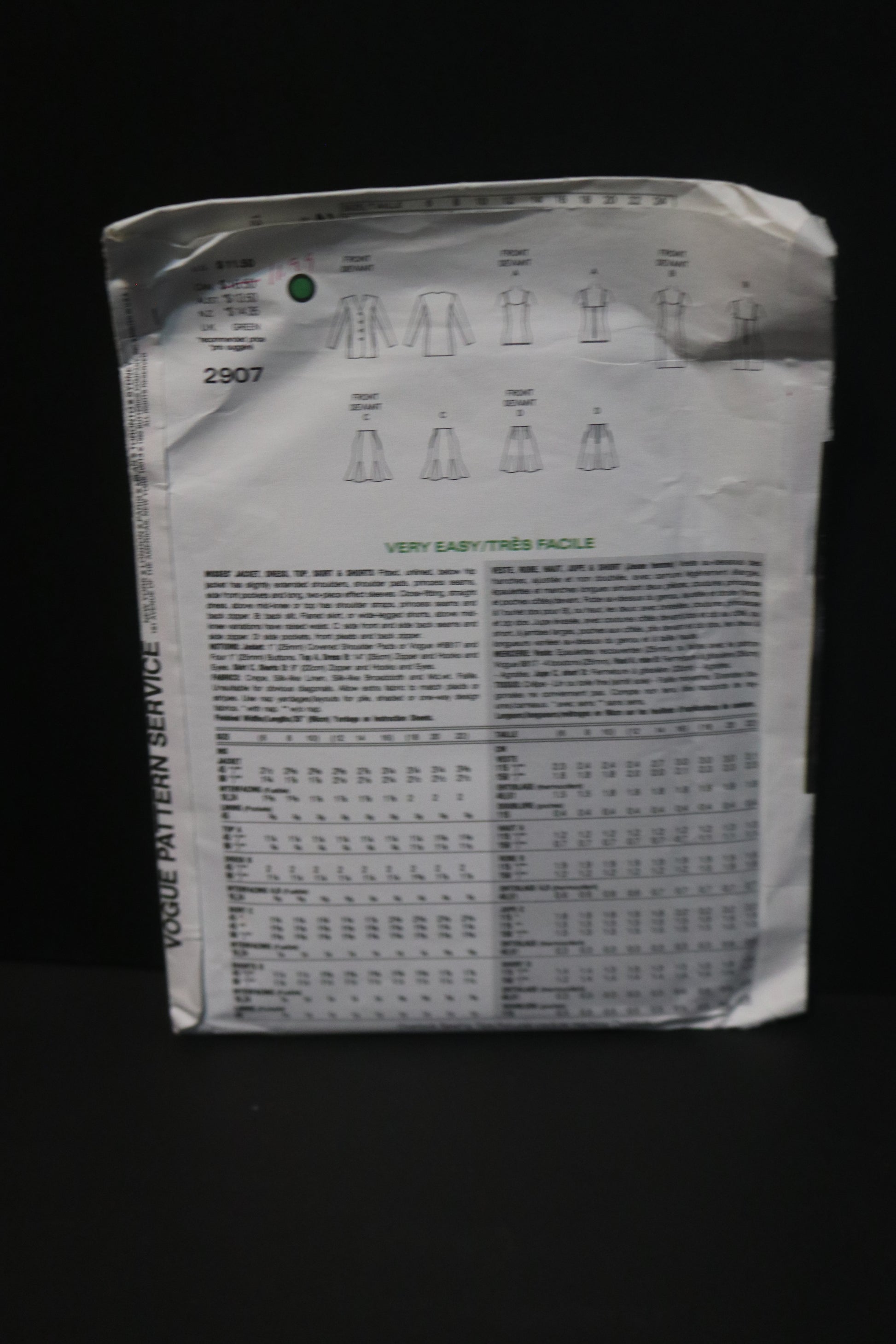 Vogue 2907 Misses Jacket Dress Top Skirt and Shorts Sewing Pattern