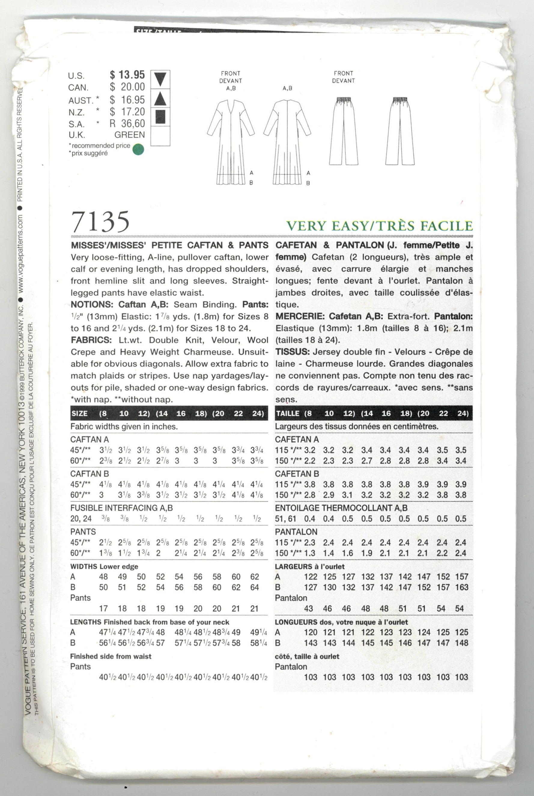 Vogue 7135 Misses/ Misses Petite Caftan and Pants Sewing Pattern