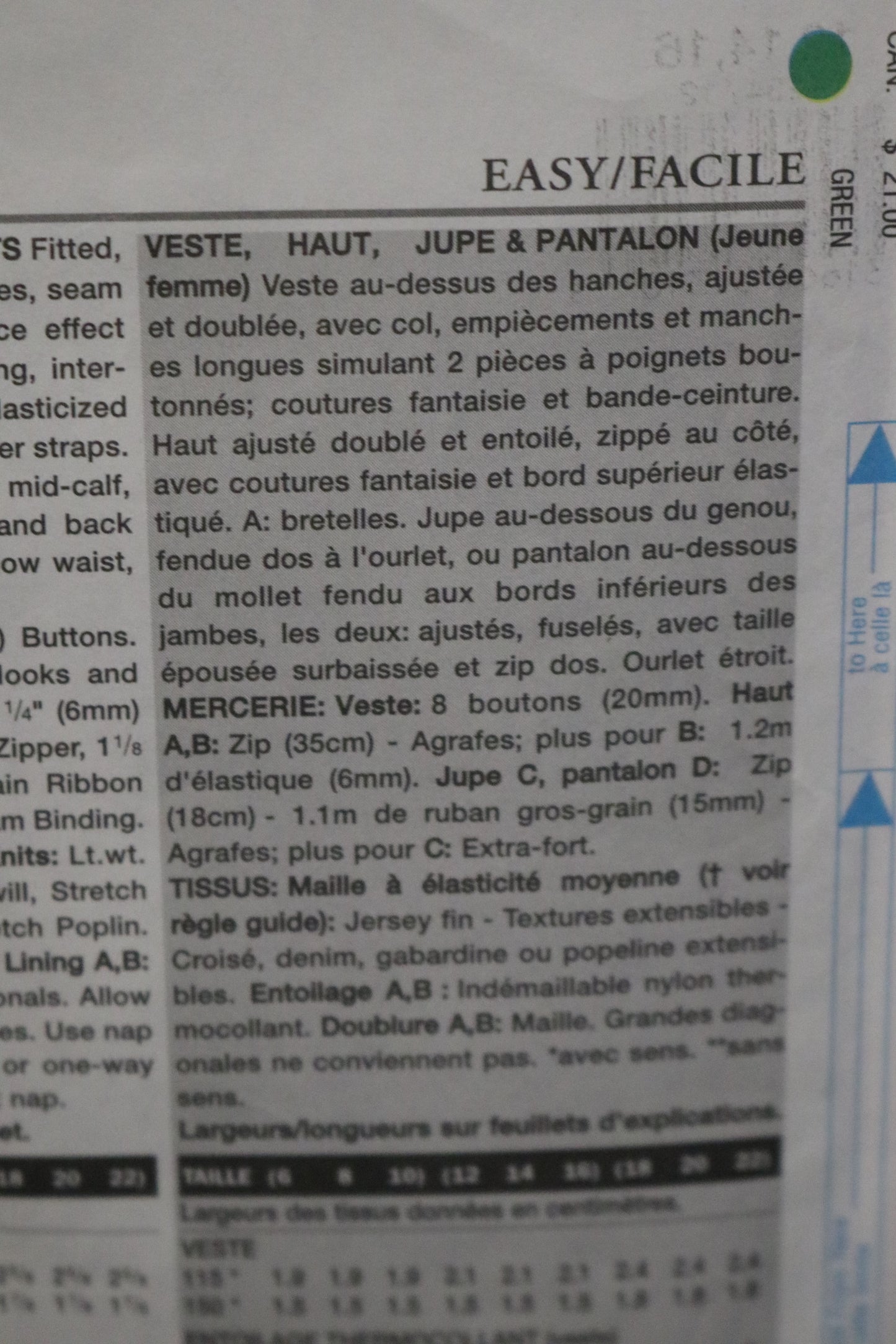 Fitted lined, above hip jacket has collar, yokes, seam detail, hem band and long, teo piece effect sleeves with button cuffs. Close - fitting, interfaced, lined top has seam detail, elasticized upper edge and side zipper. A: shoulder straps. Skirt, below mid knee or pants, below mid knee or pants, below mid knee or pants, below mid calf, have contour waist, slit variations and back zipper. Narrow hem. C,D: slightly below waist, close fitting, tapered.