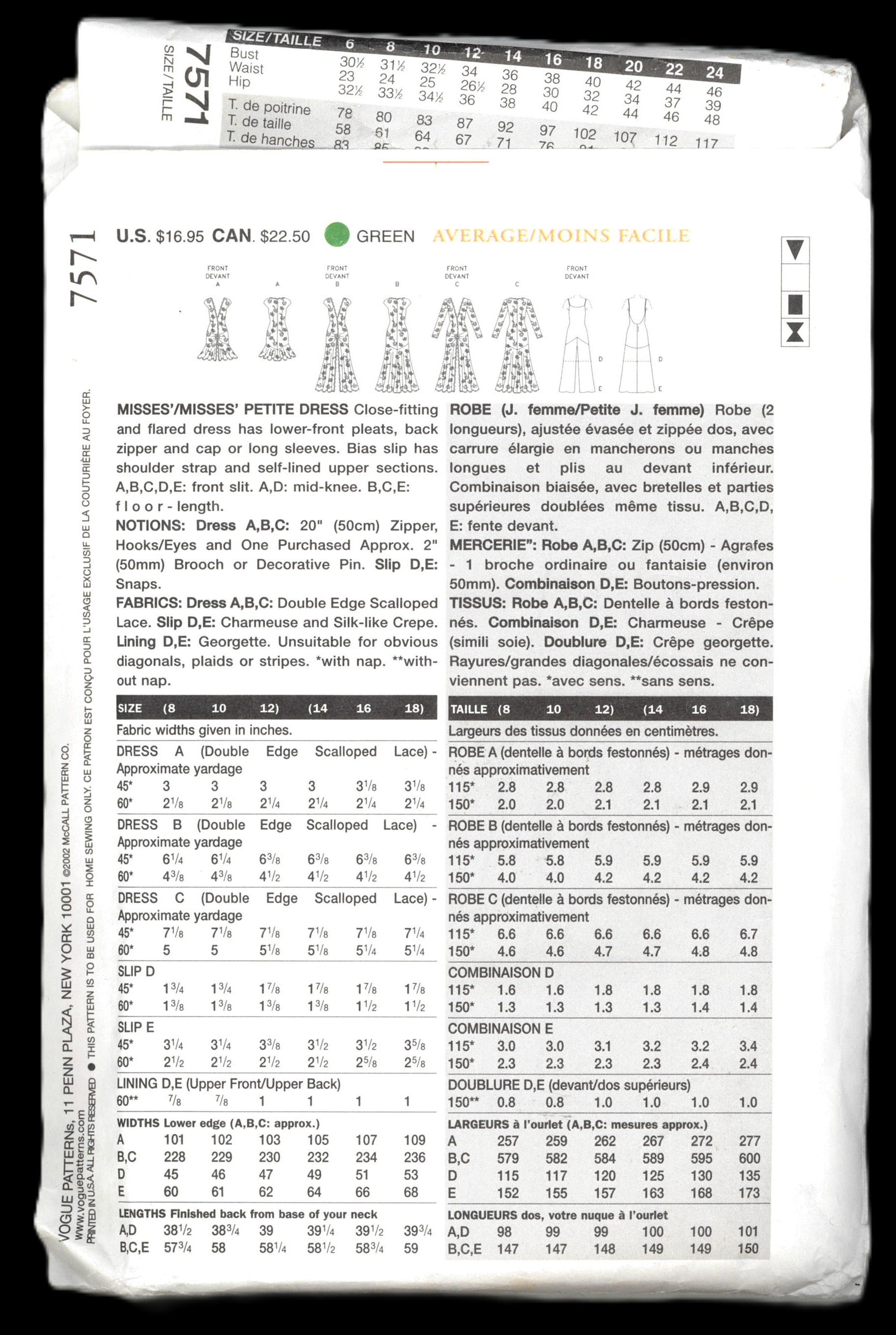 Vogue 7571 Misses / Misses Petite Dress Sewing Pattern
