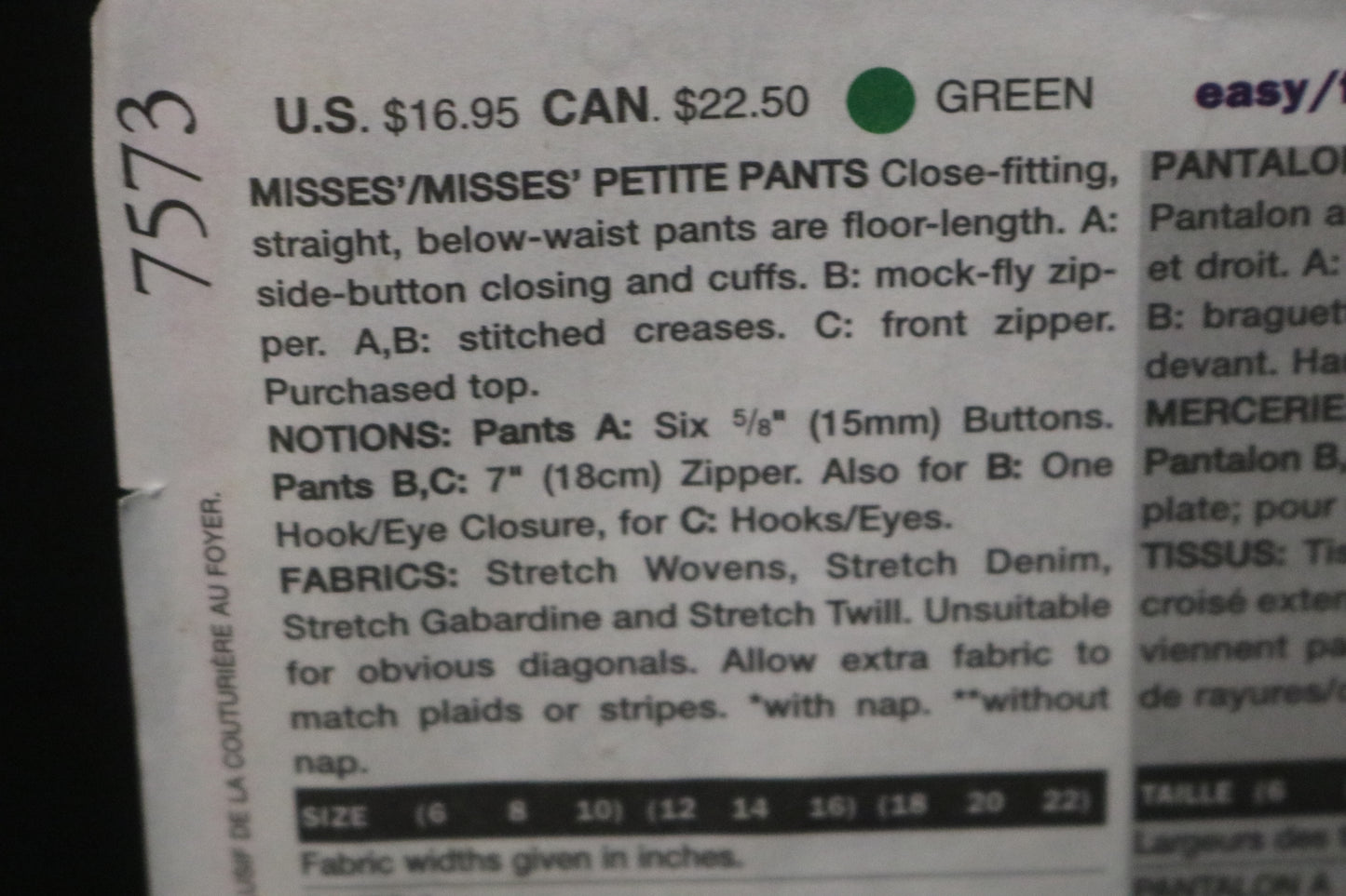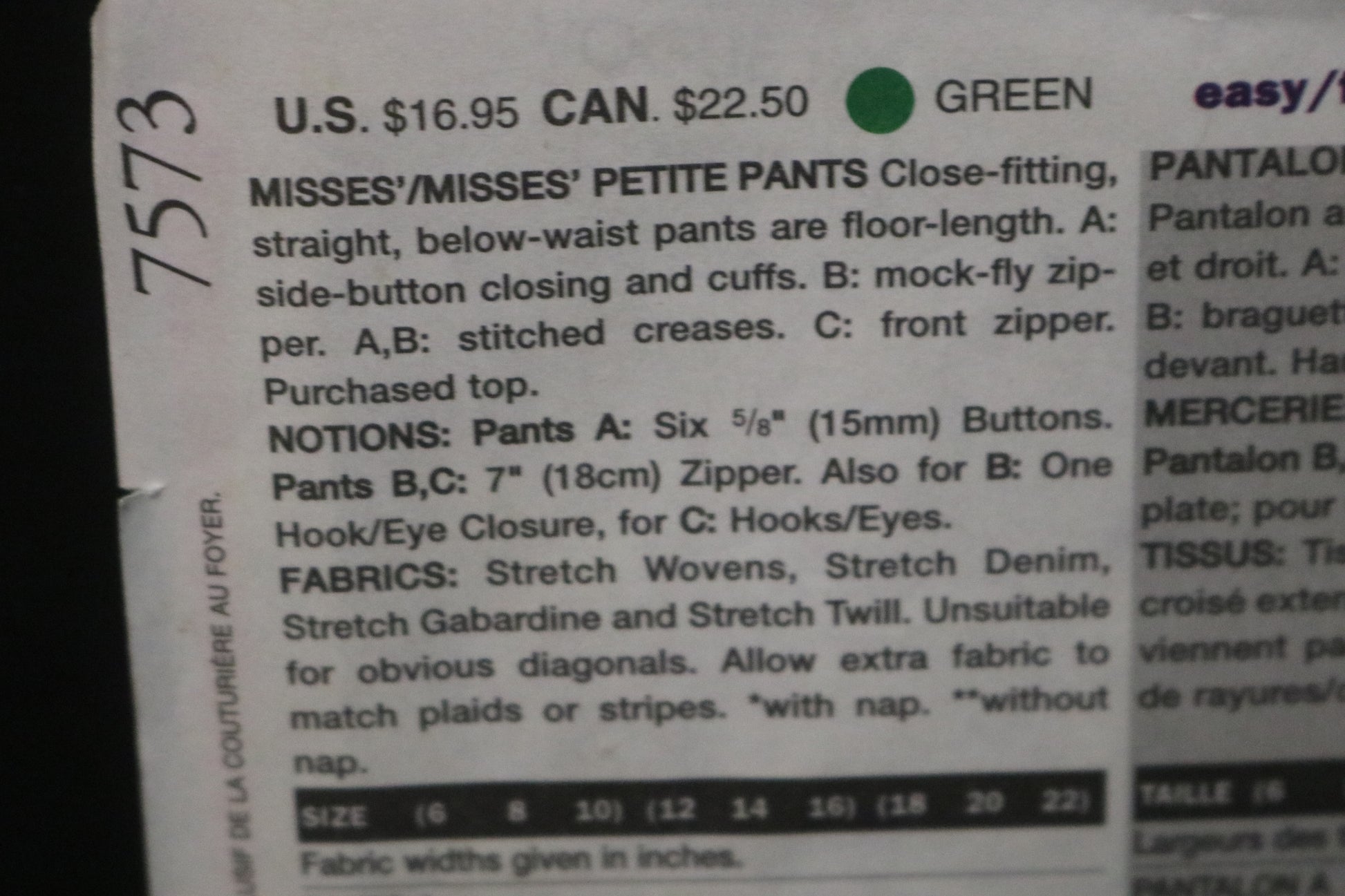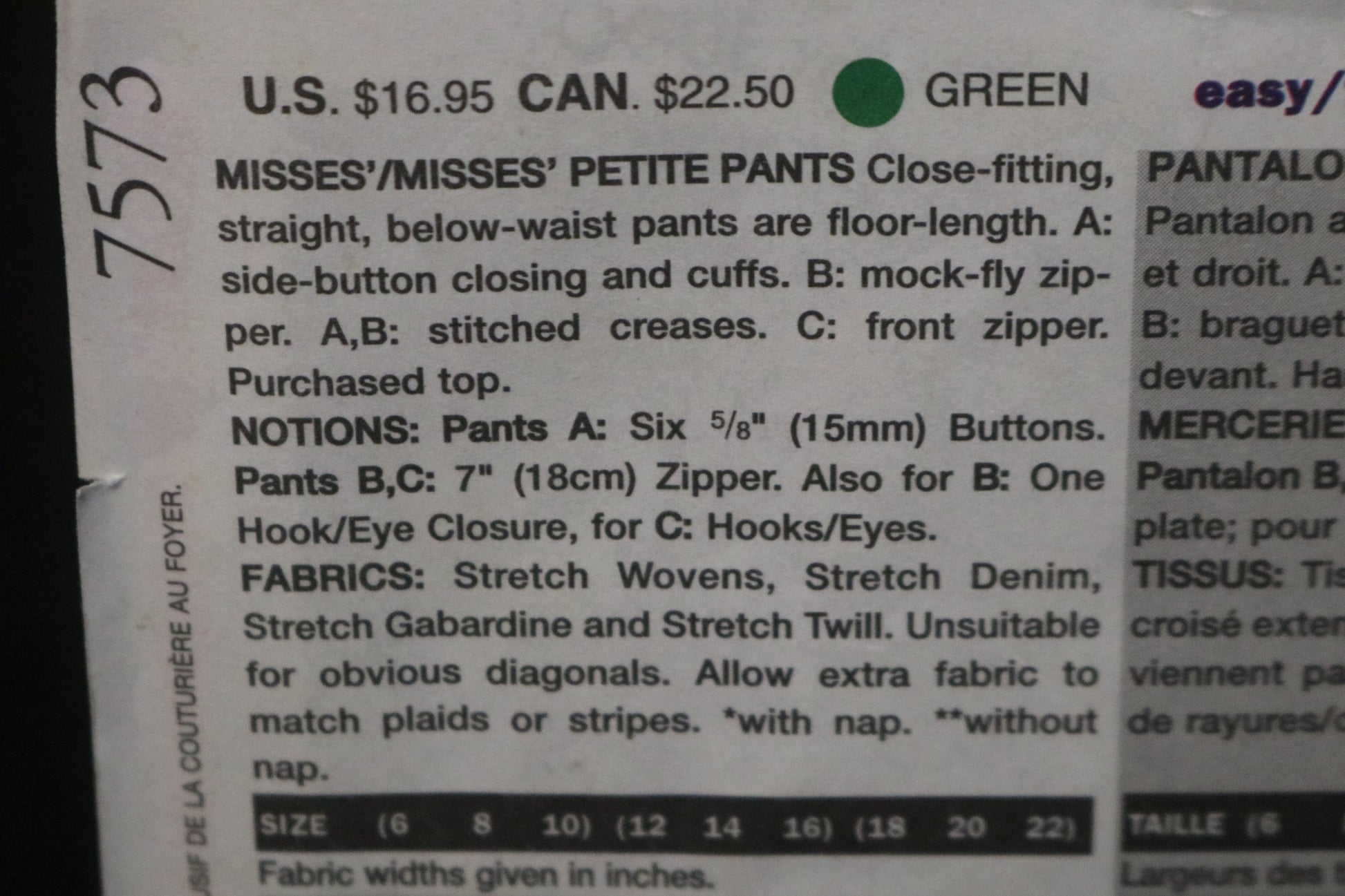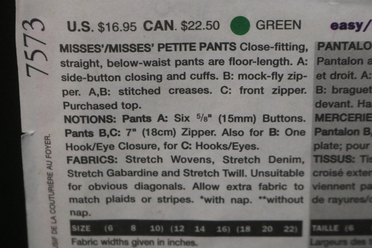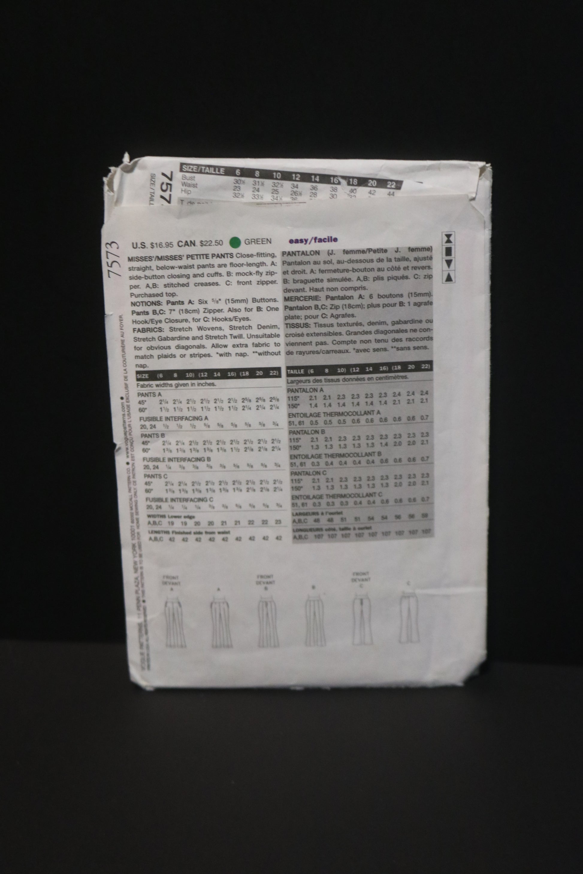 Vogue 7573 Misses / Miss Petite Pants Sewing Pattern - UNCUT - Size 6 8 10