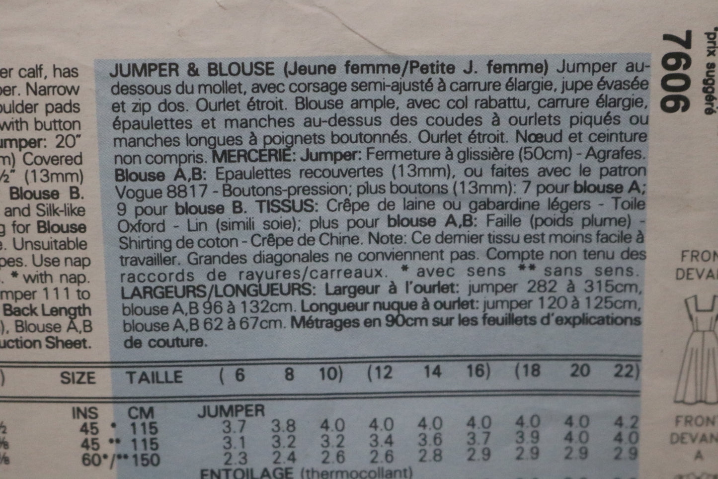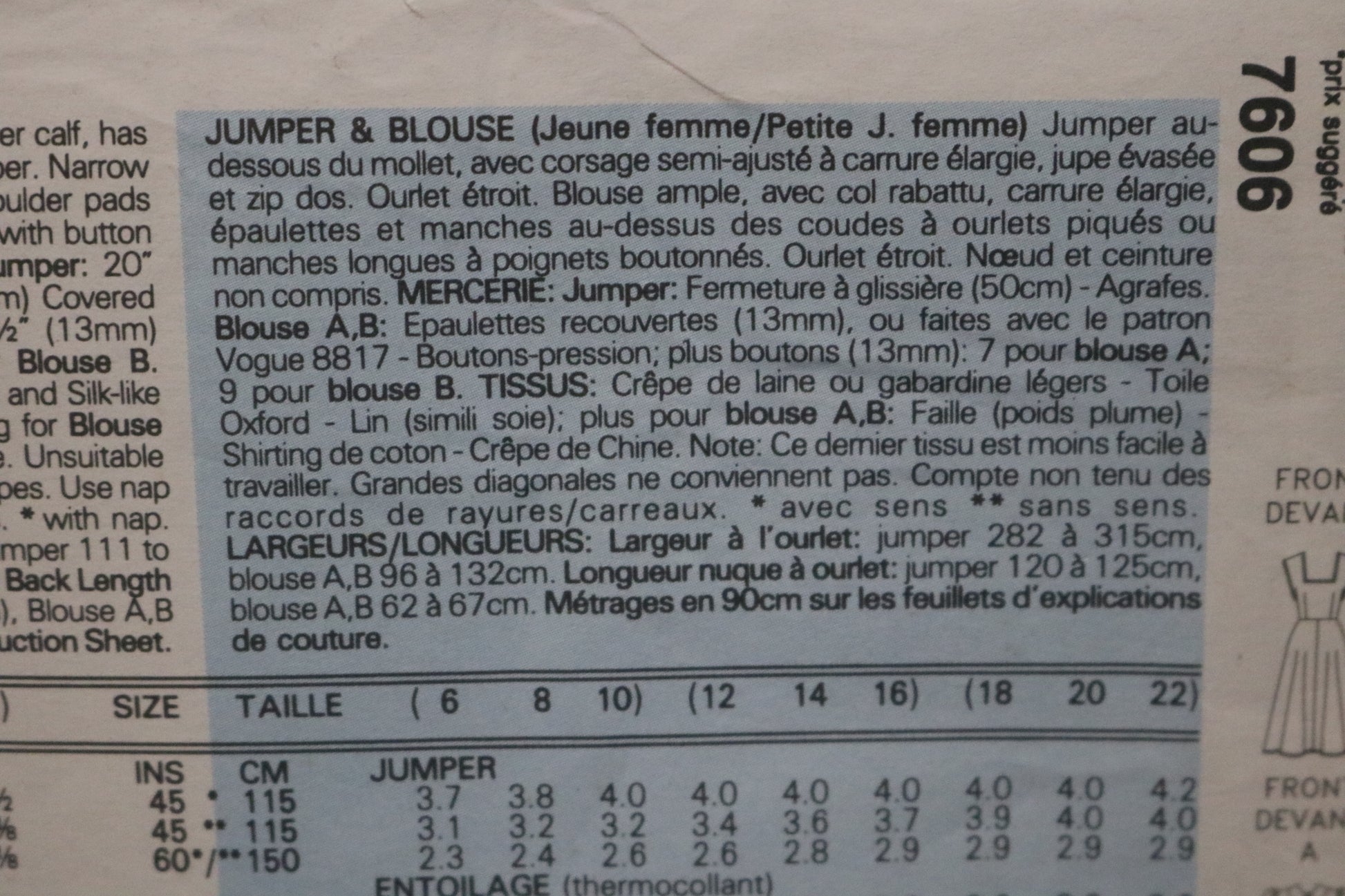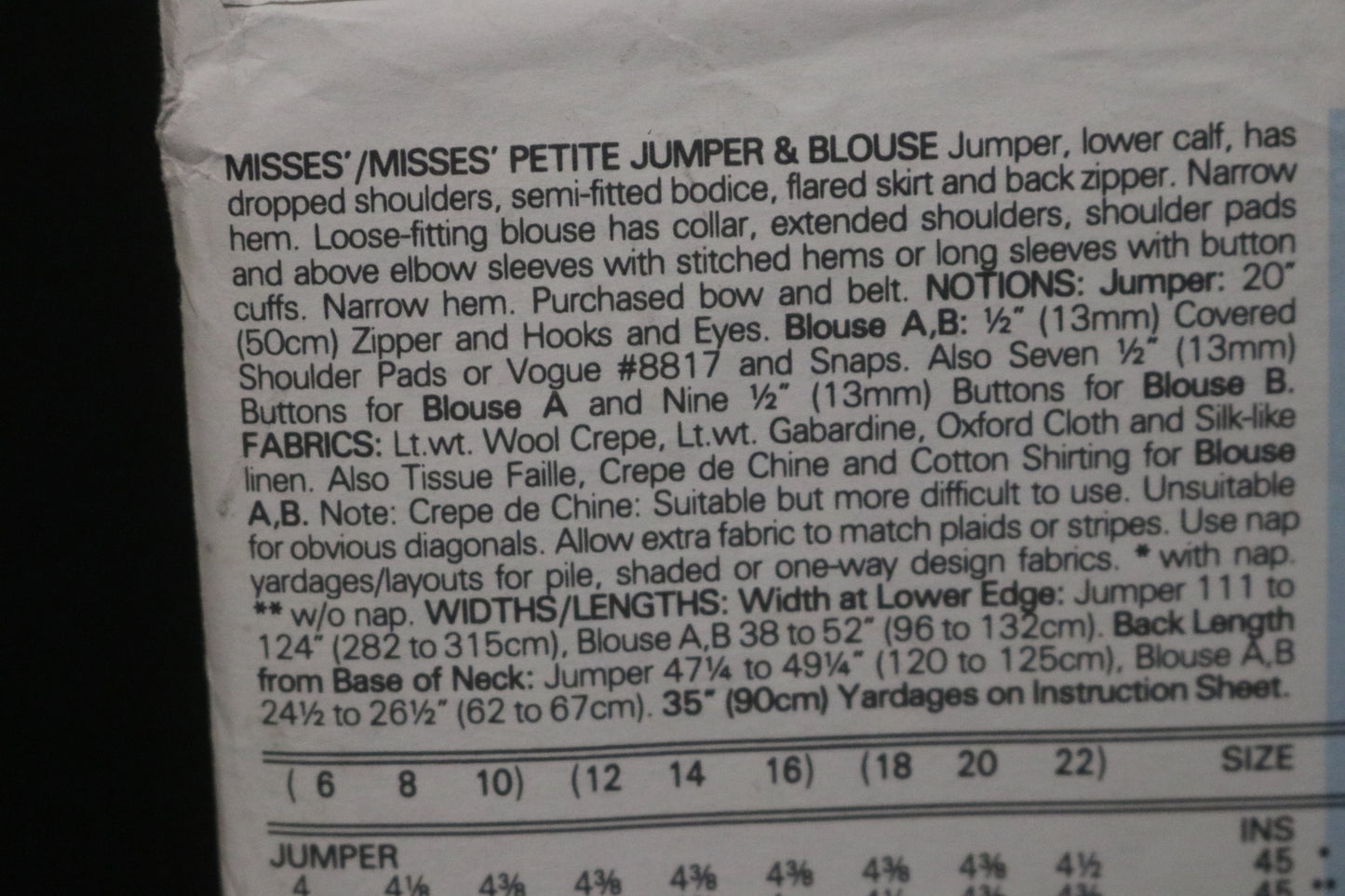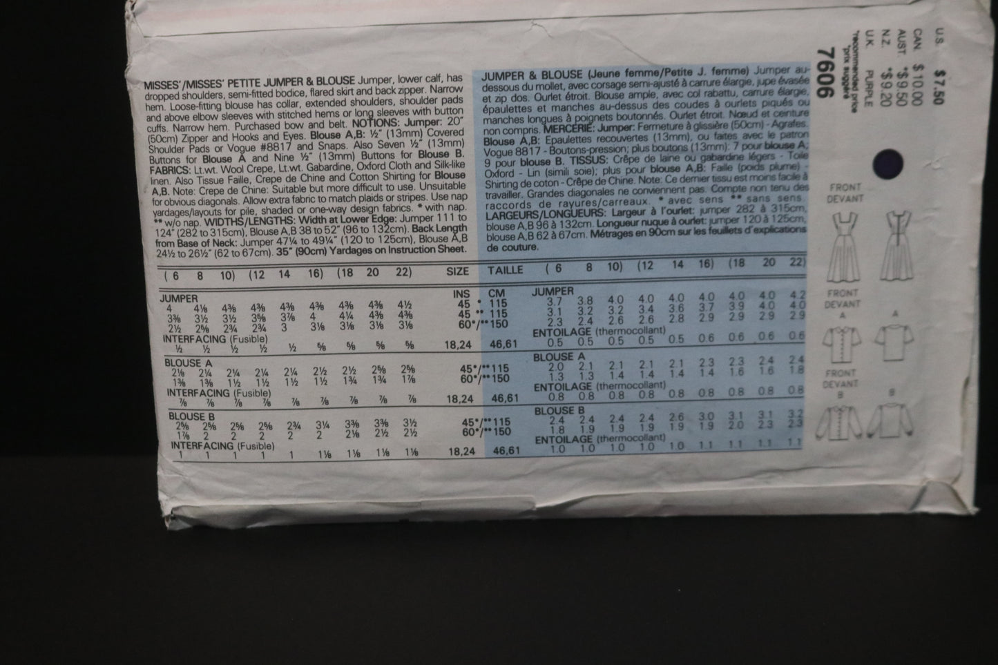 Vogue 7606 Misses / Misses Petite Jumper and Blouse Sewing Pattern UNCUT Size 6 8 10