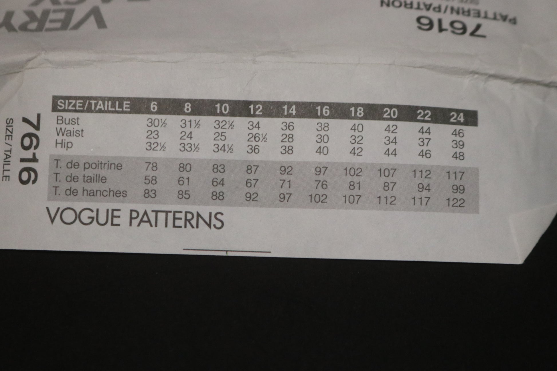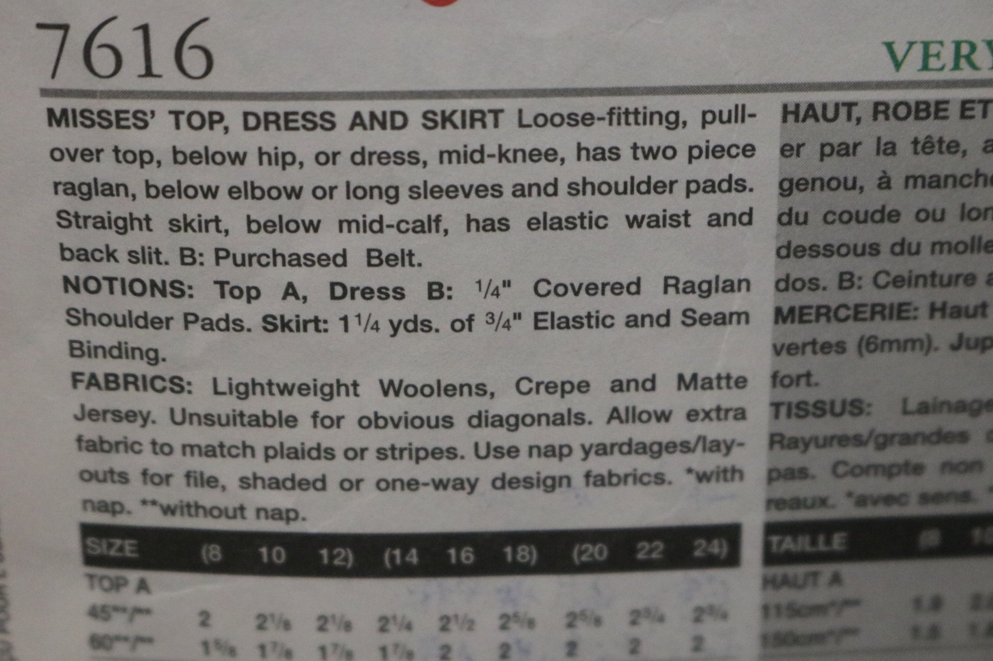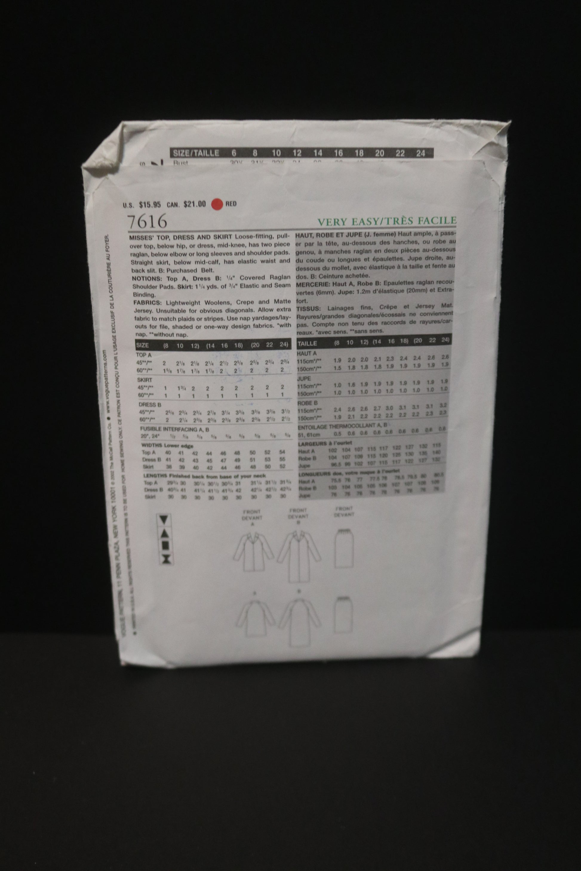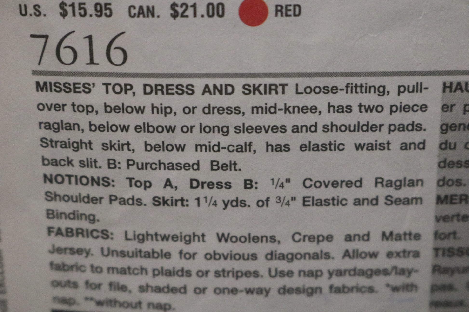 Vogue 7616 Misses Top Dress and Skirt Sewing Pattern