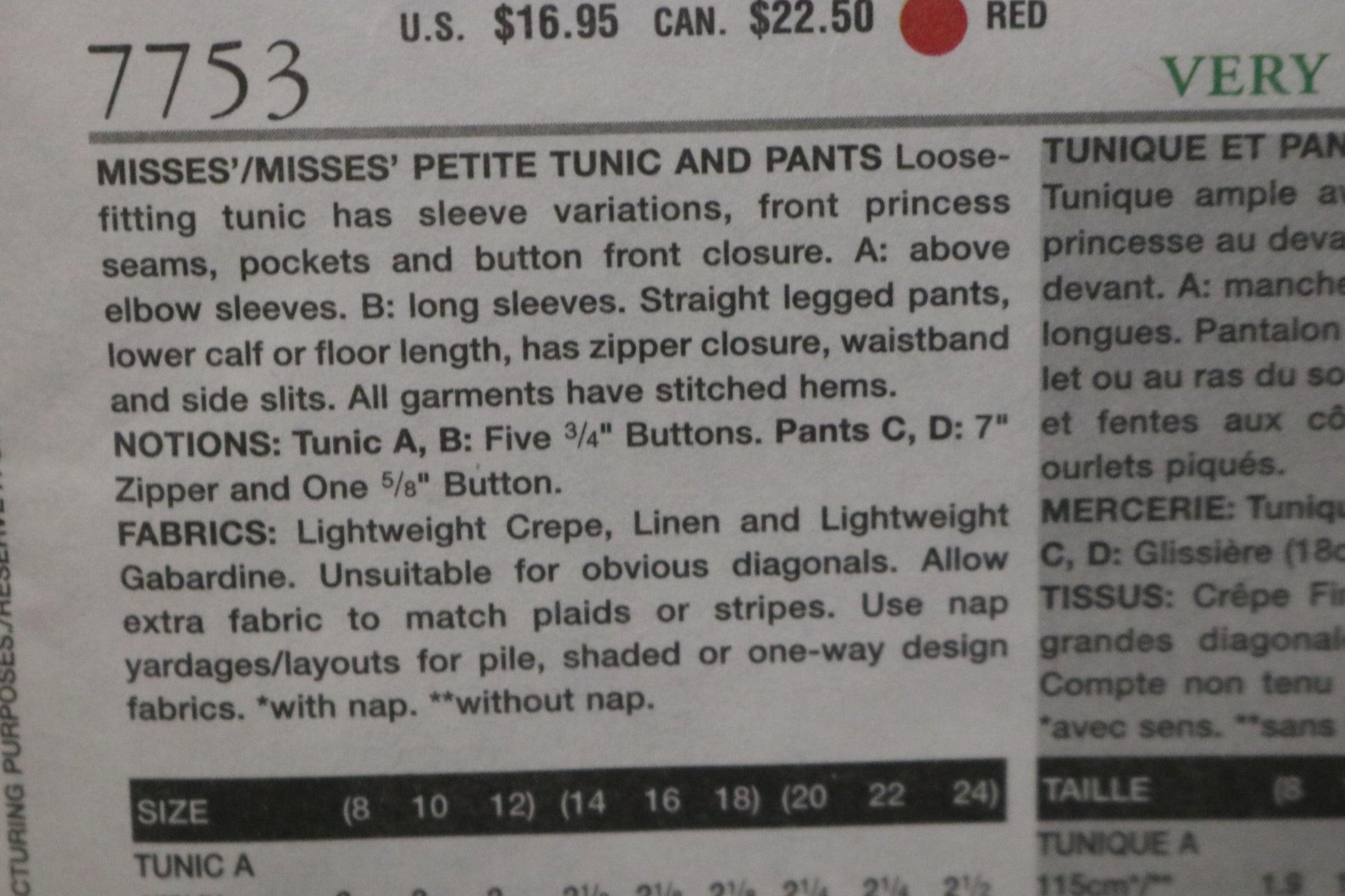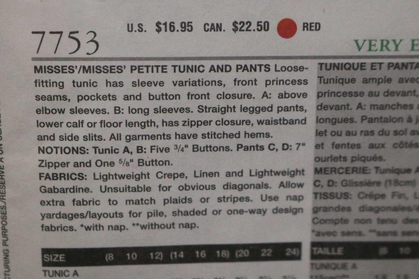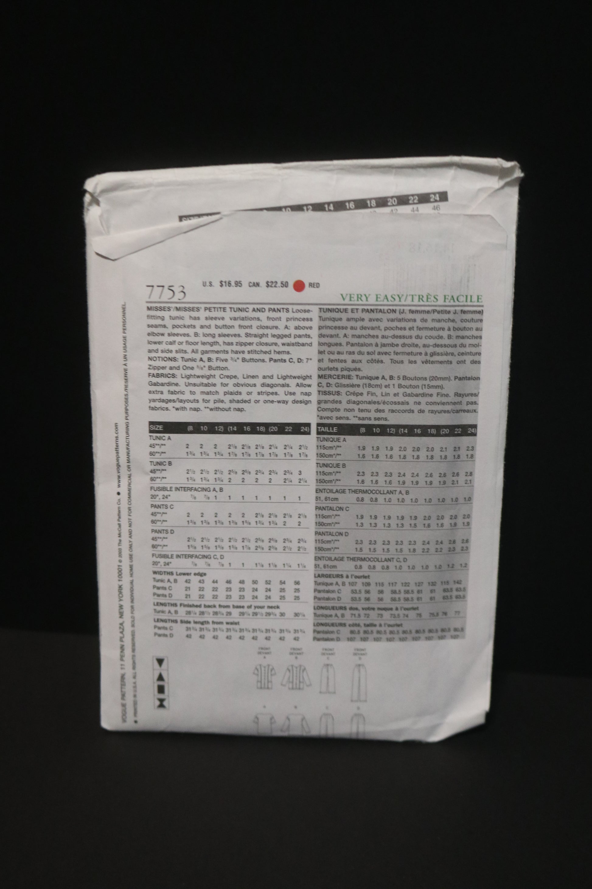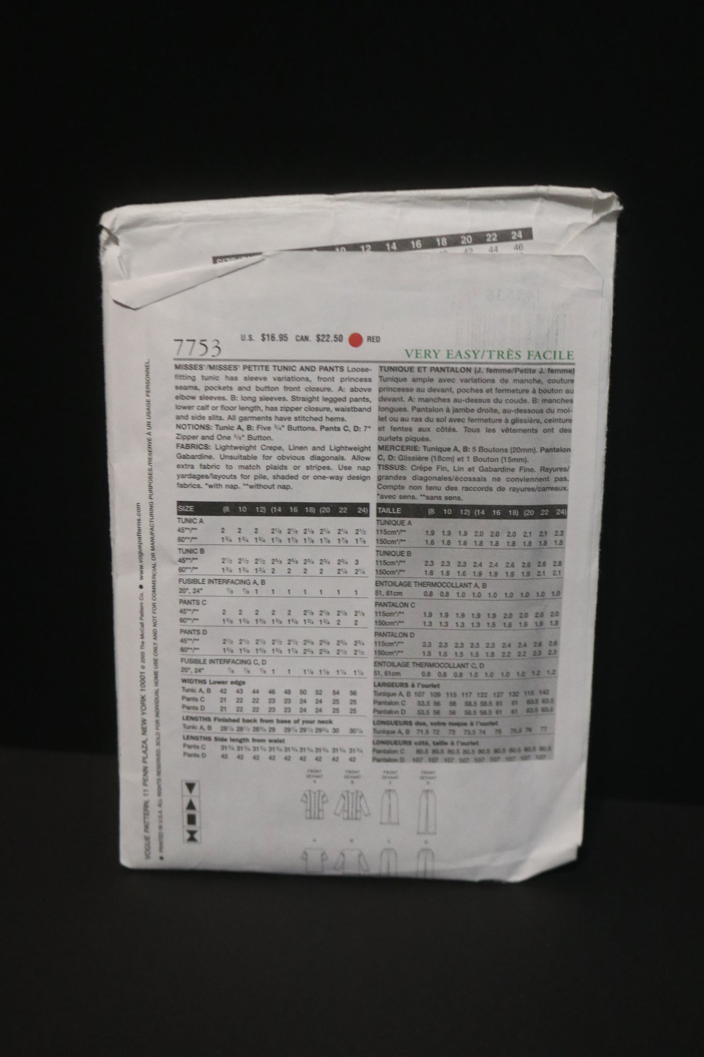 Vogue 7753 Misses / Misses Petite Tunic and Pants Sewing Pattern