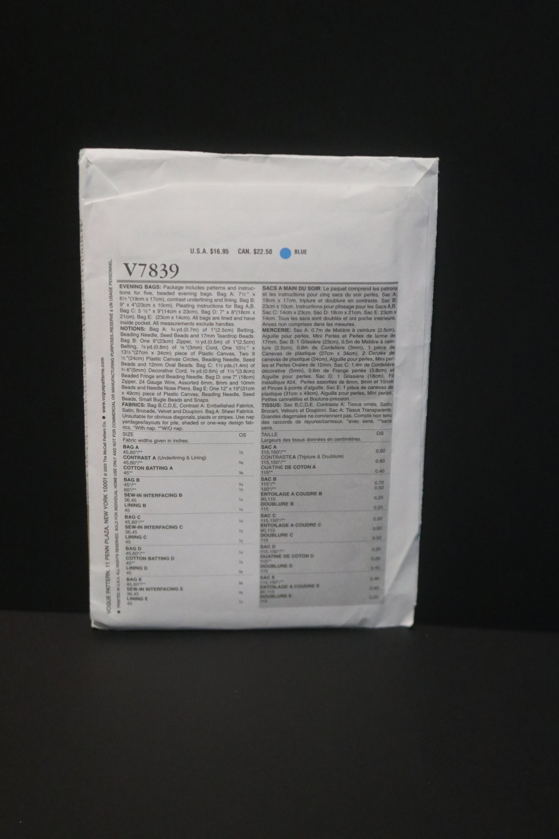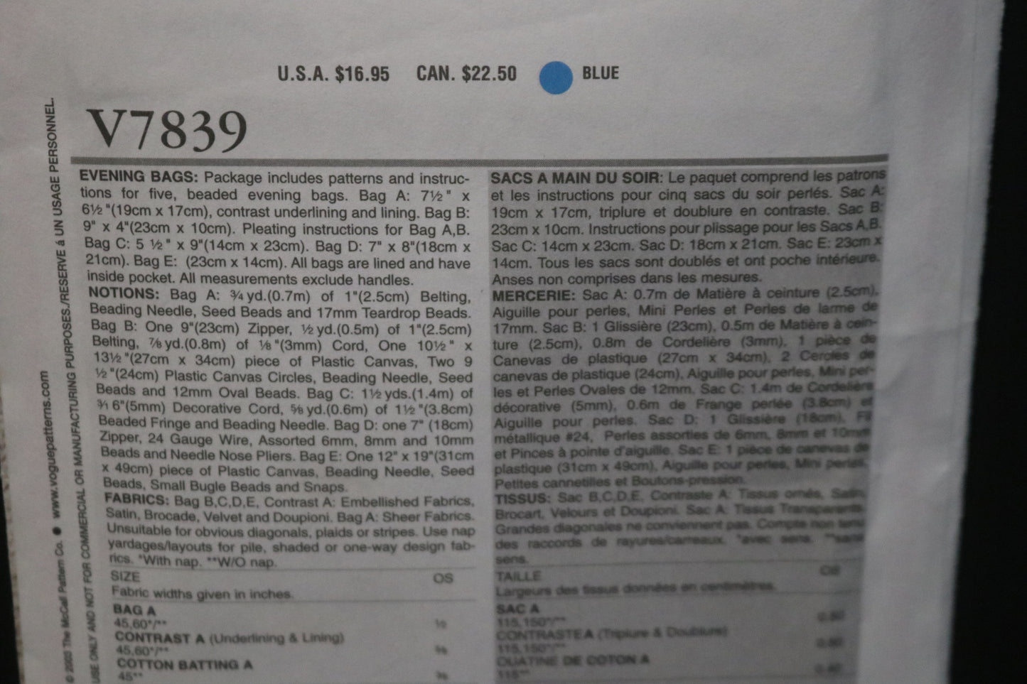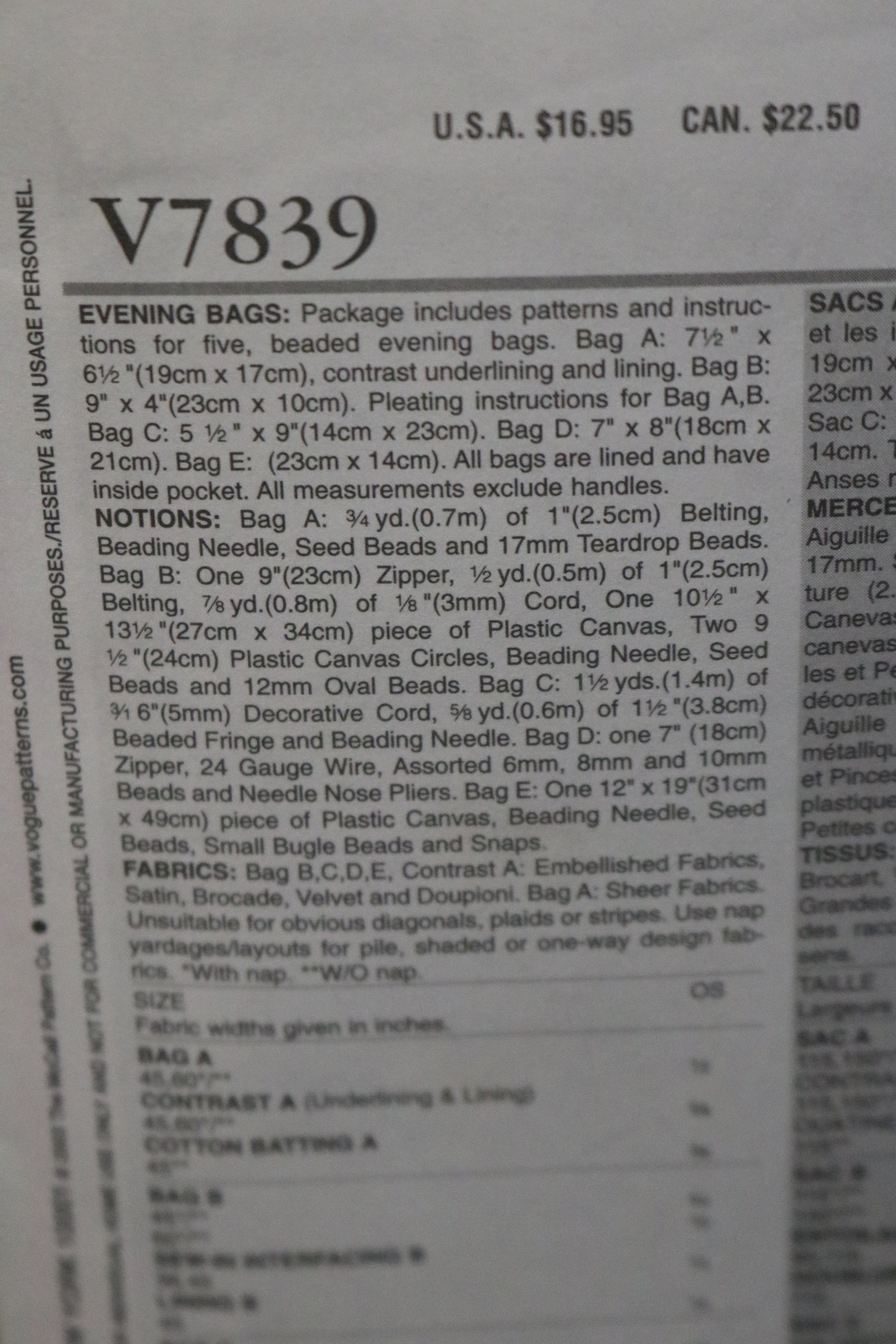Vogue 7839 Evening Bags Sewing Pattern