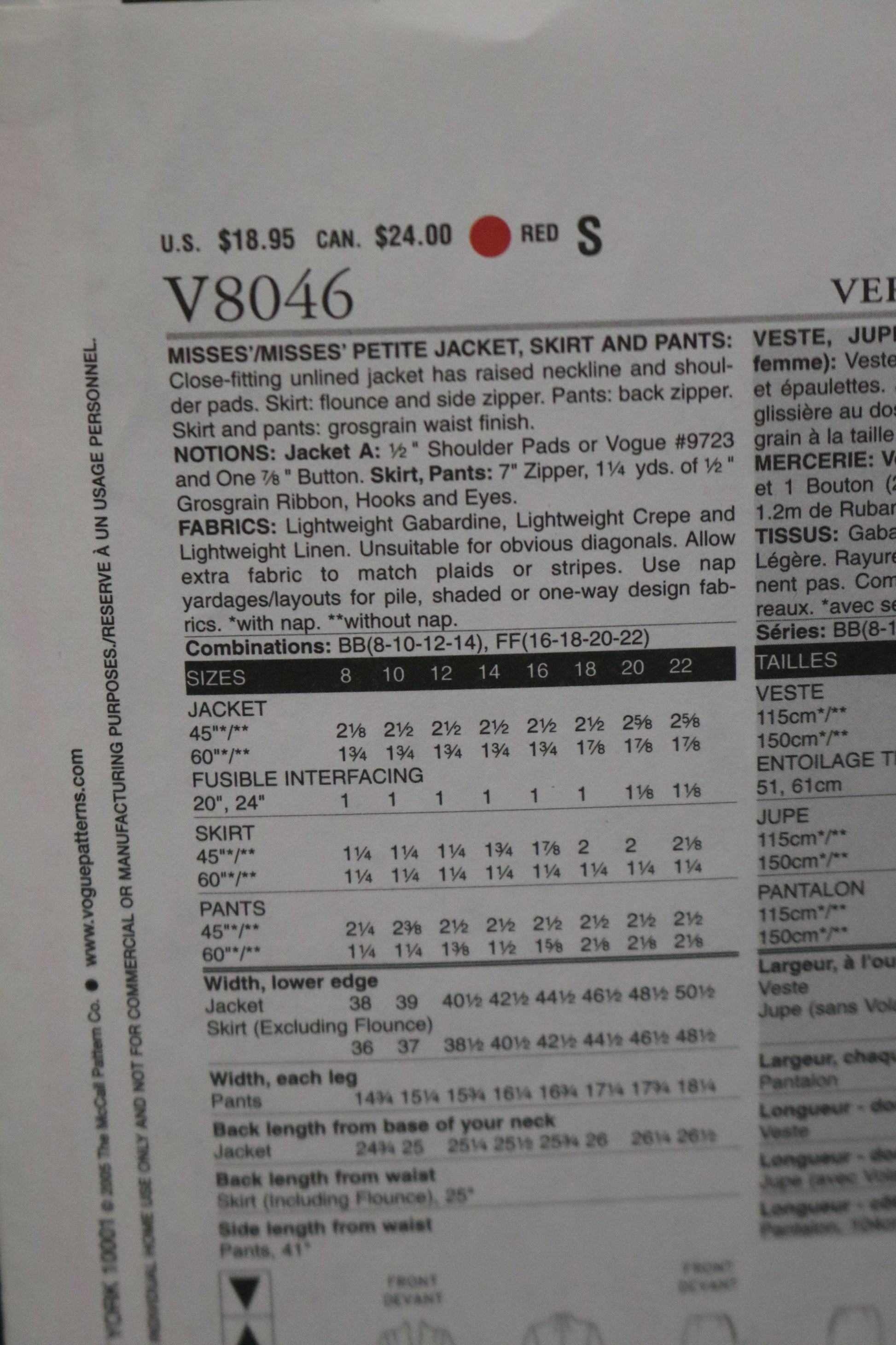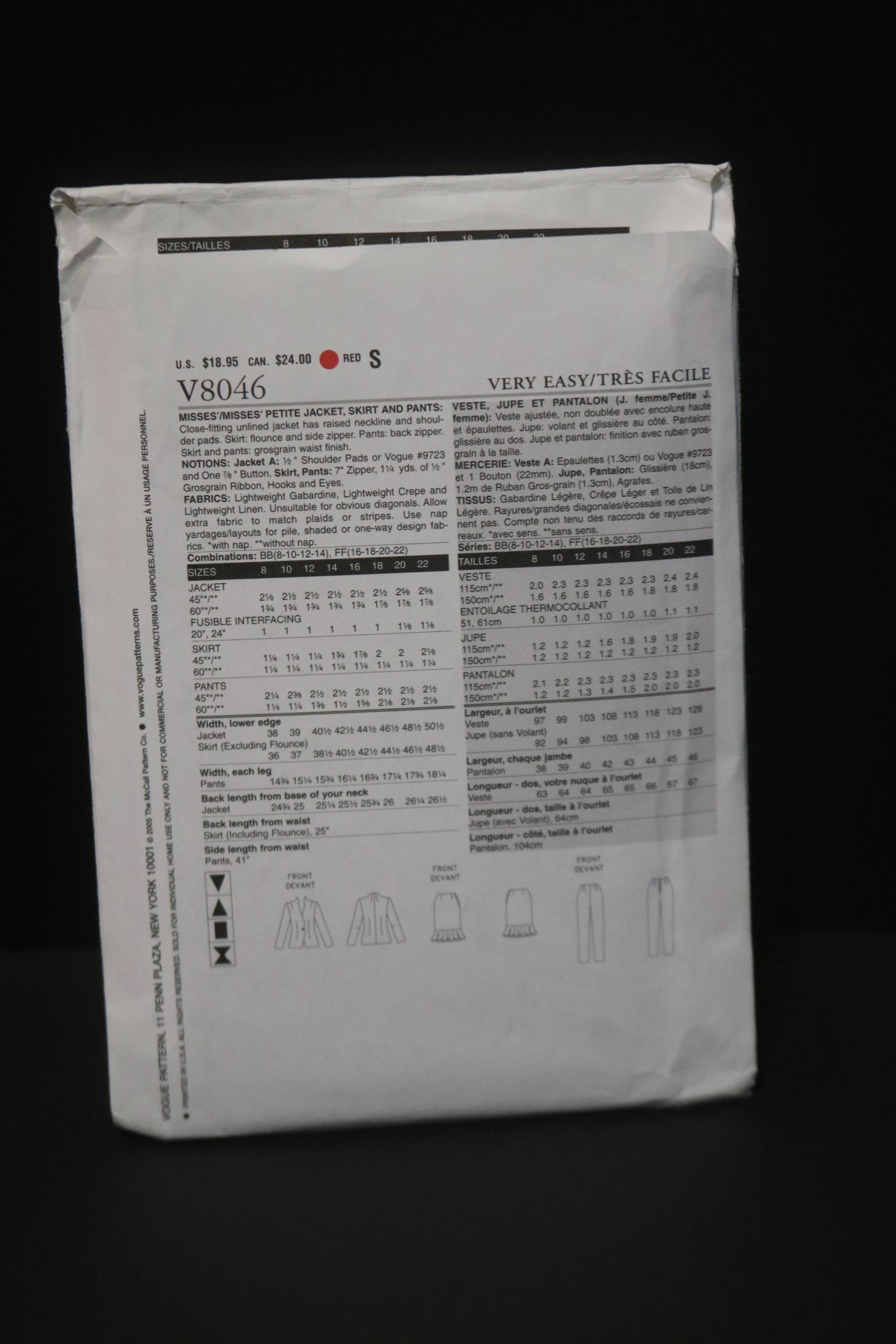 Vogue 8046 Misses / Misses Petite Jacket Skirt and Pants Sewing Pattern