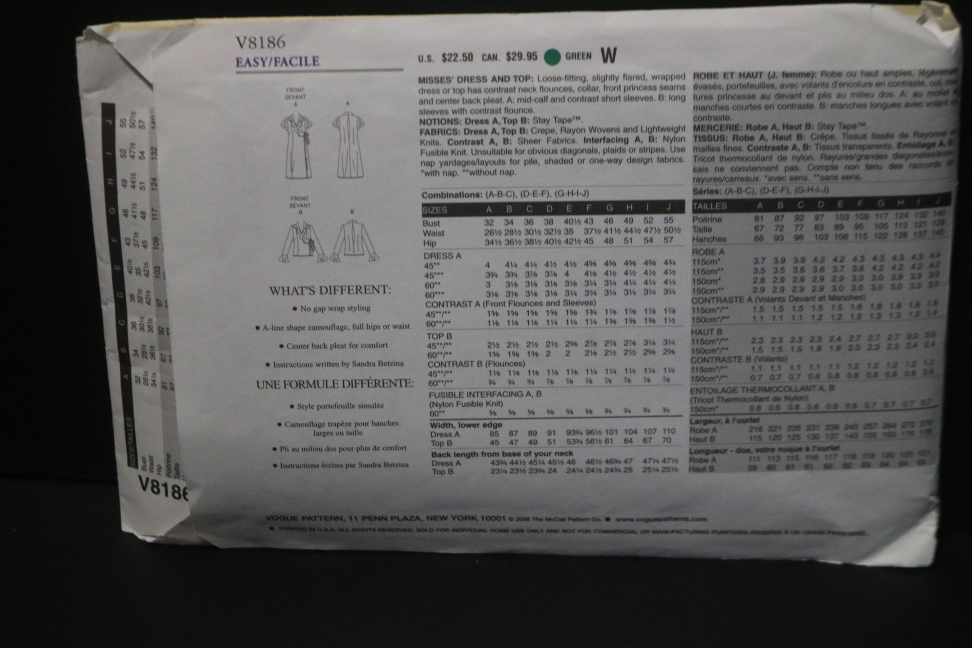 Vogue 8186 Sandra Betzina Misses Dress or Top Sewing Pattern