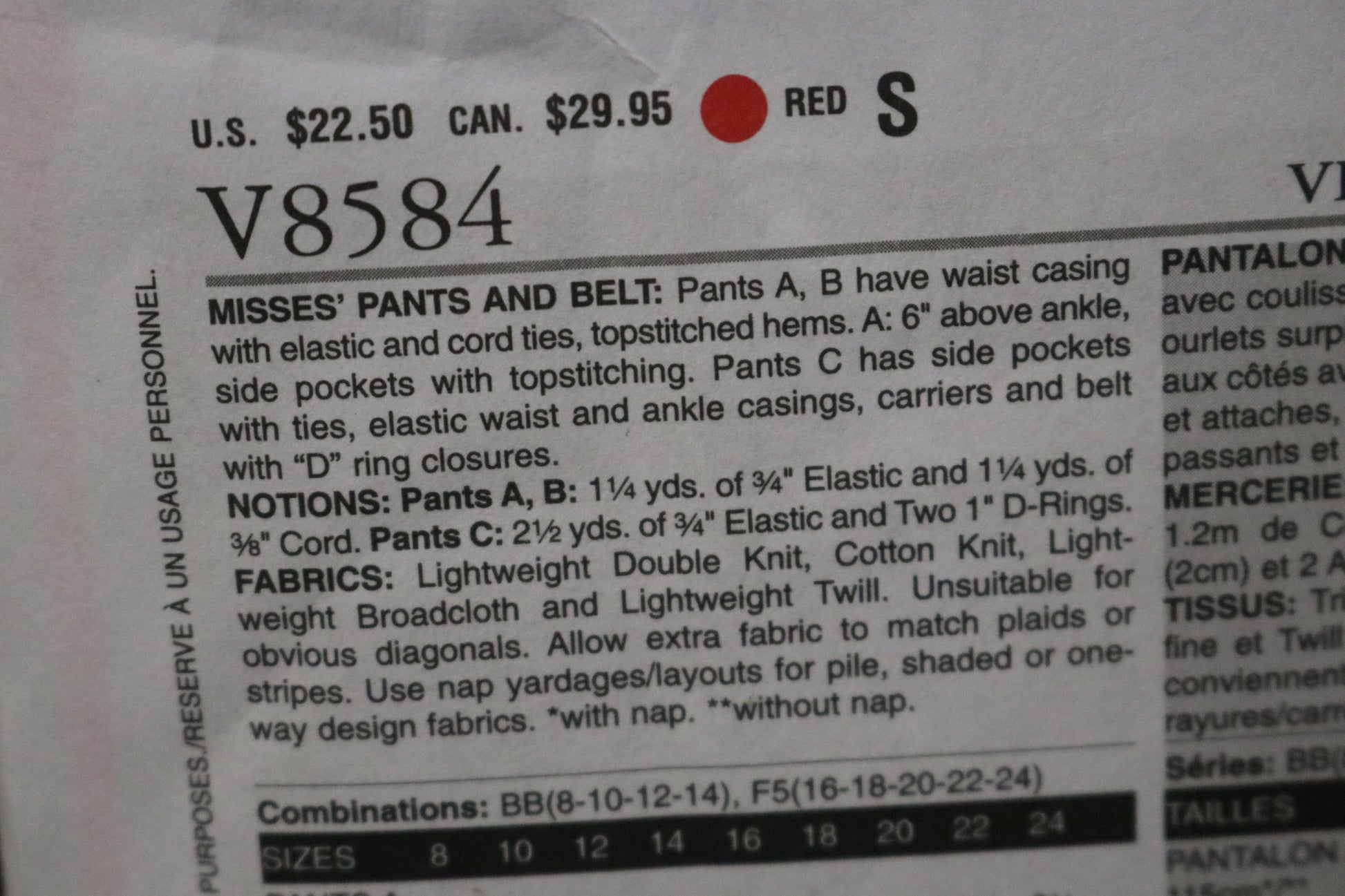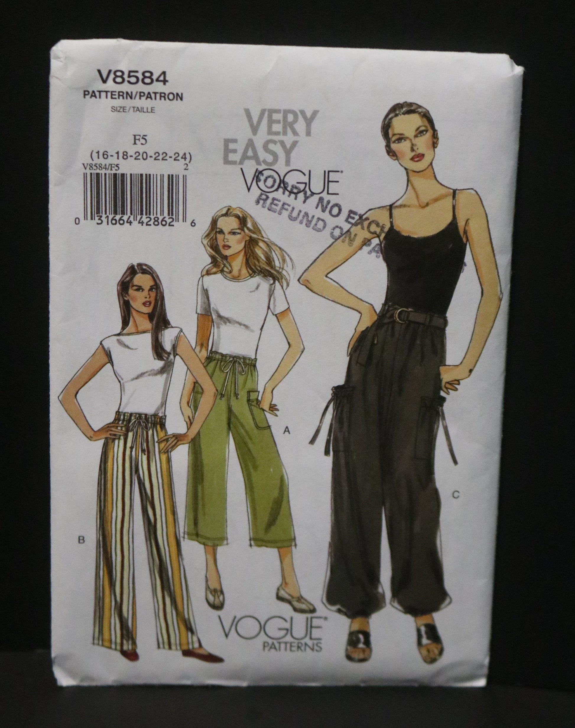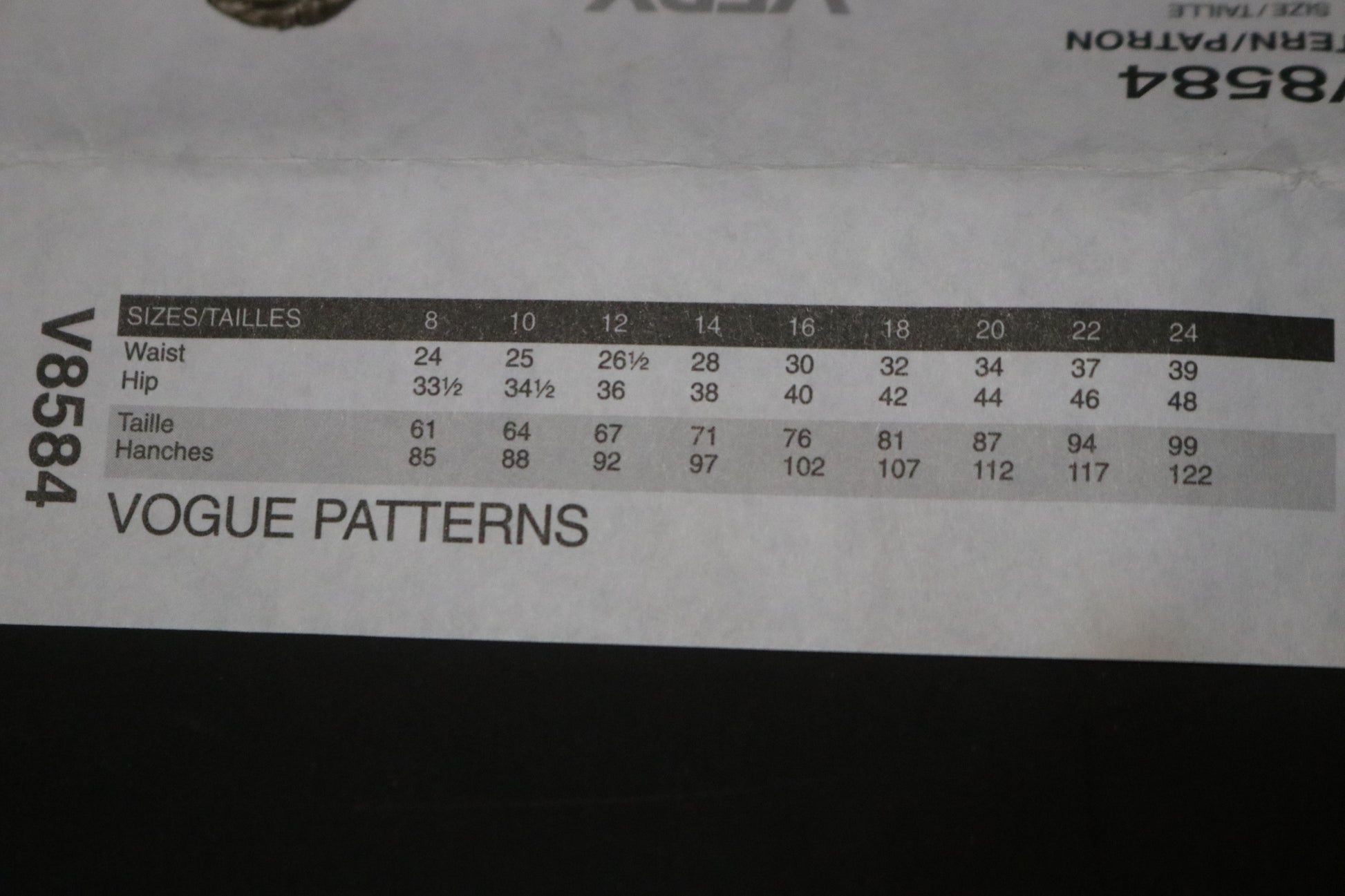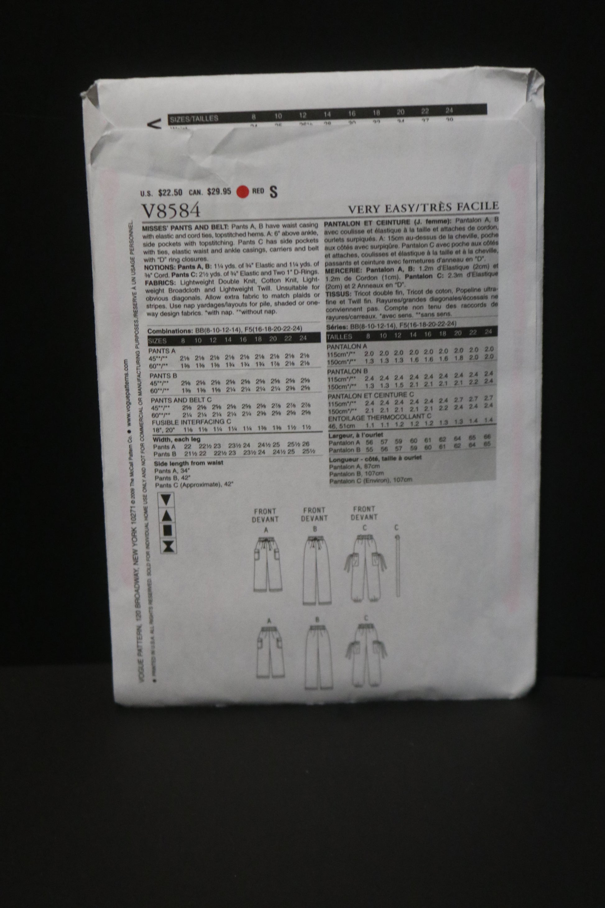 Vogue 8584 Misses Pants and Belt Sewing Pattern - UNCUT - Size 16 18 20 22 24