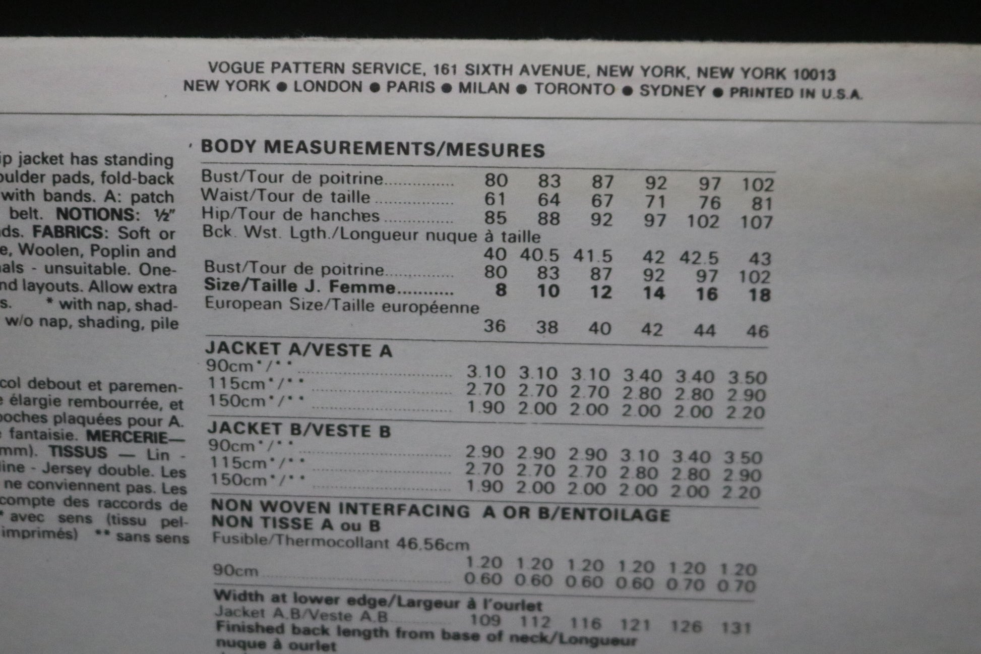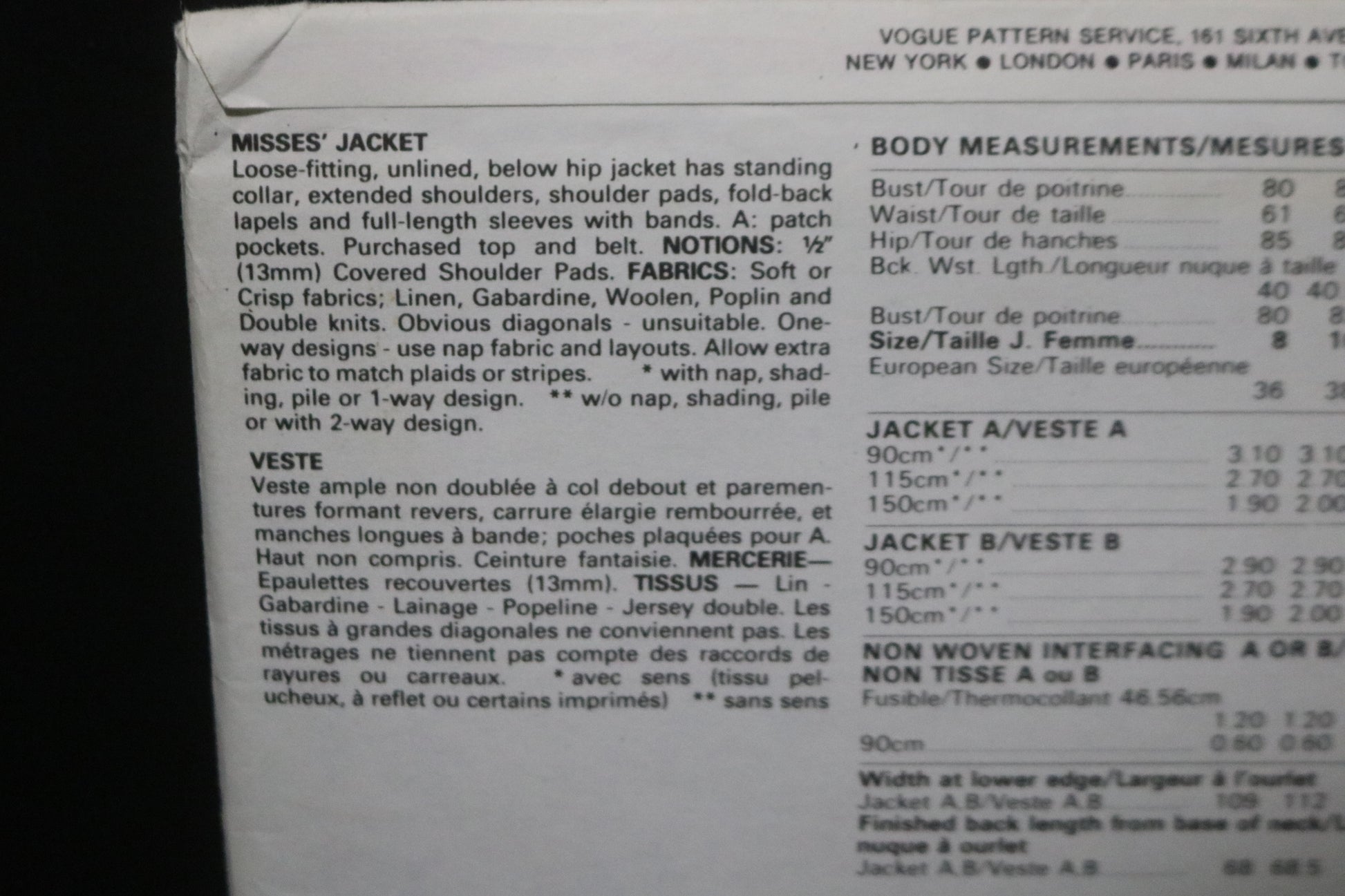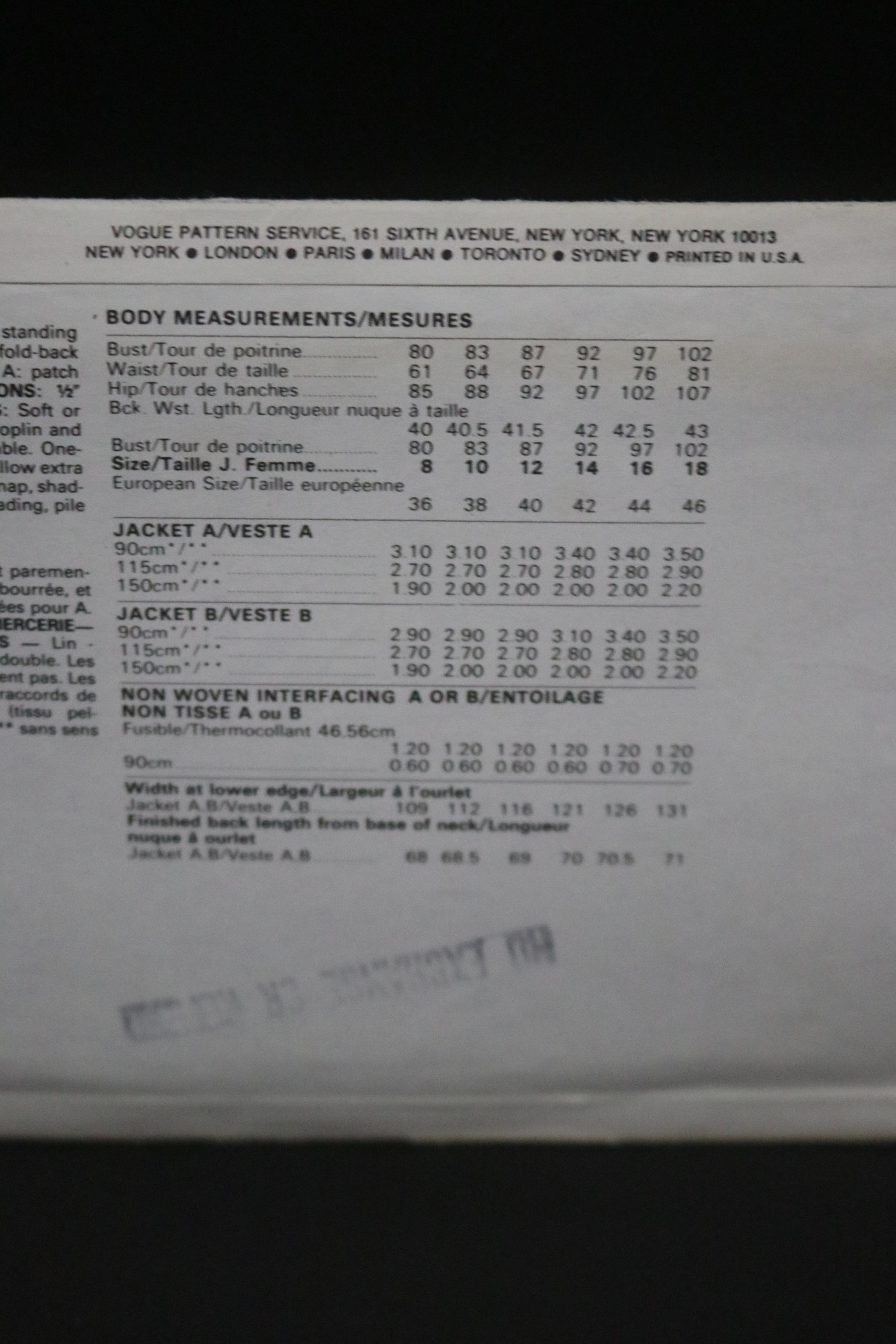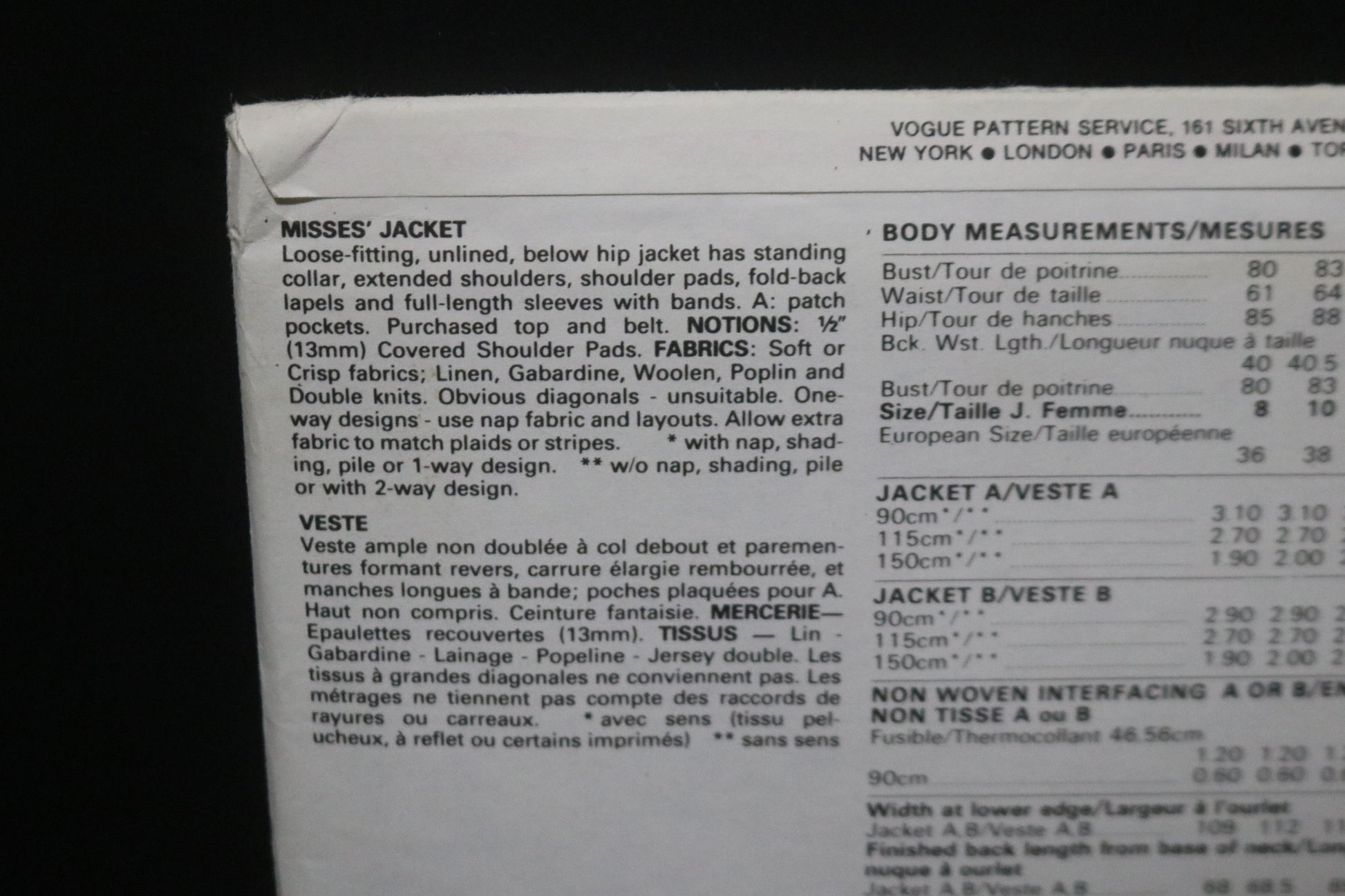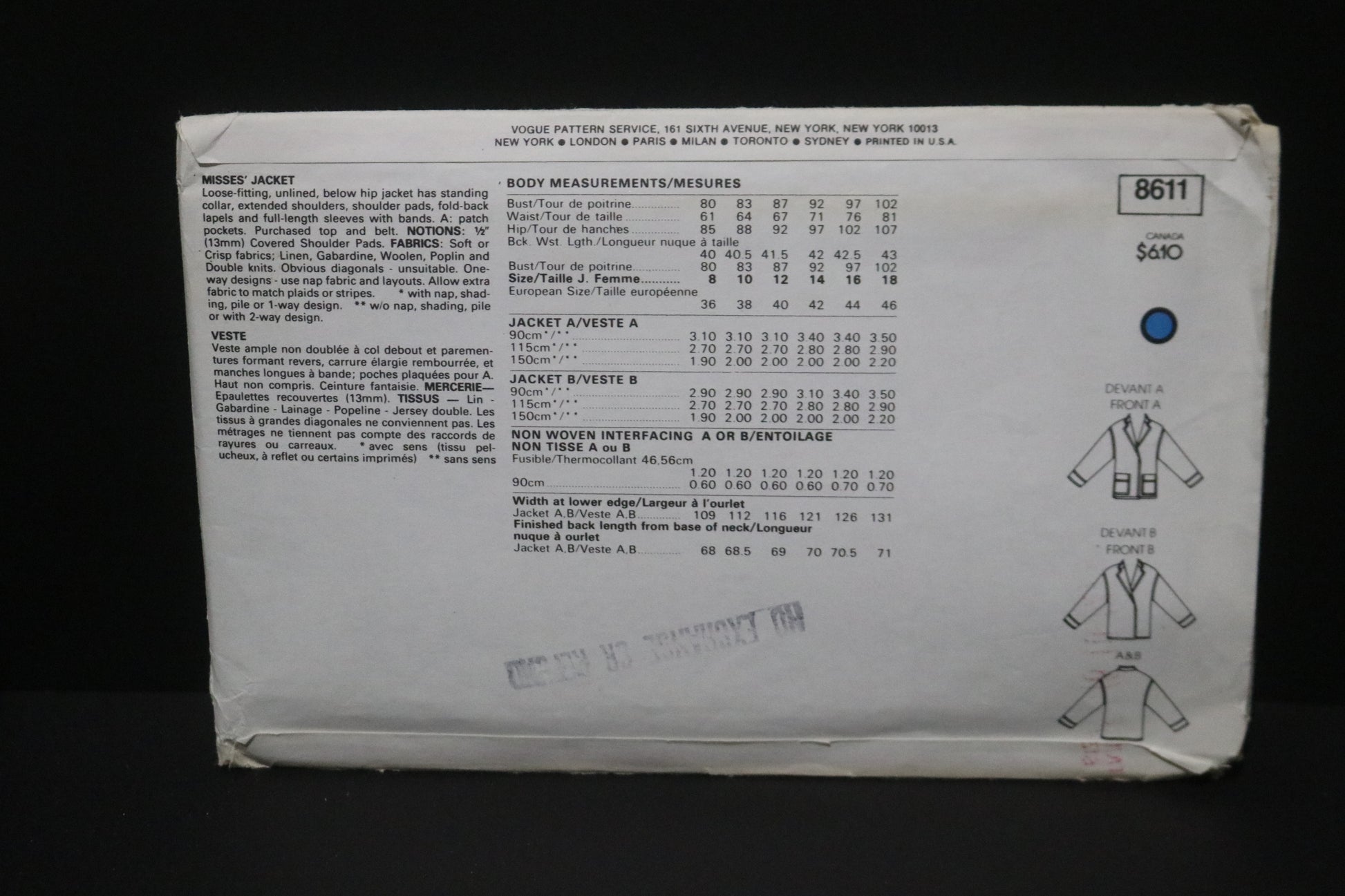 Vogue 8611 Misses Jacket Sewing Pattern - UNCUT - Size 8 10 12