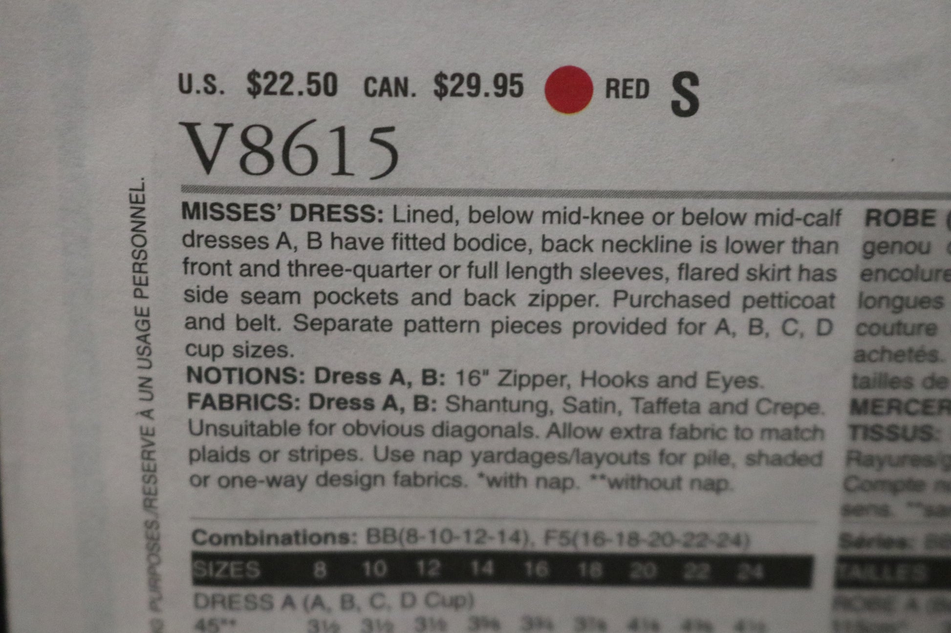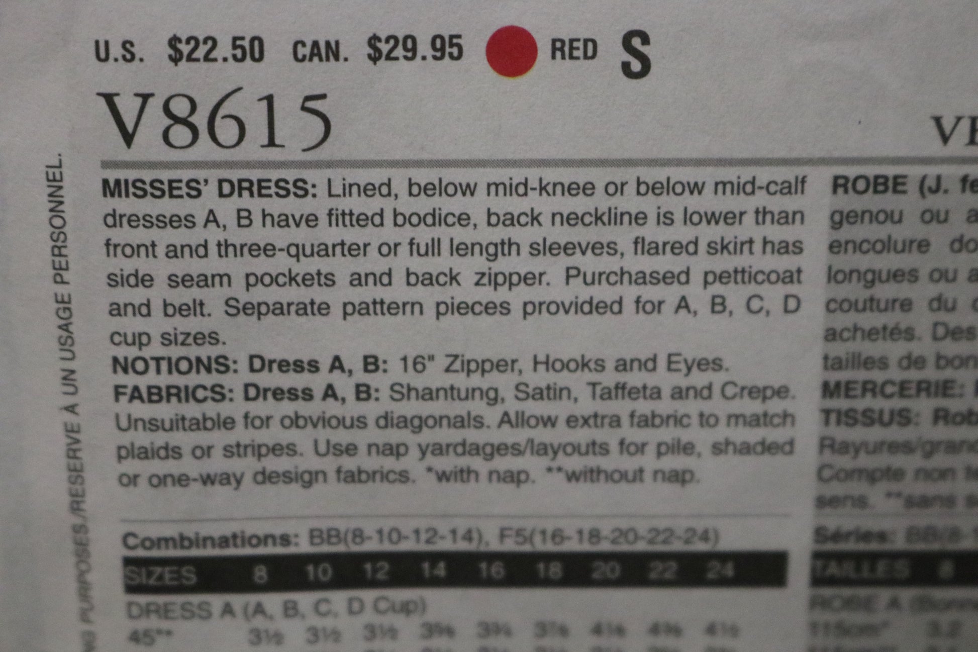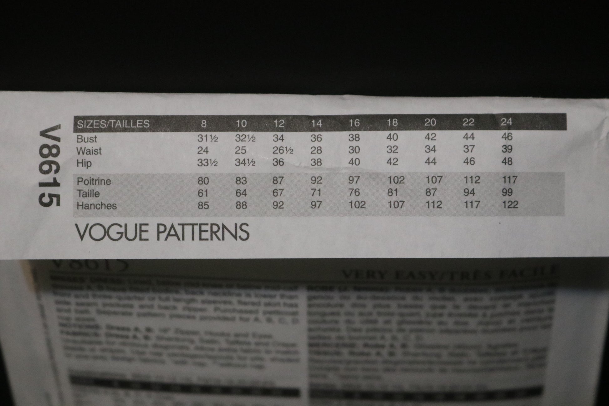 Vogue 8615 Misses Dress Sewing Pattern - UNCUT - Size 16 18 20 22 24