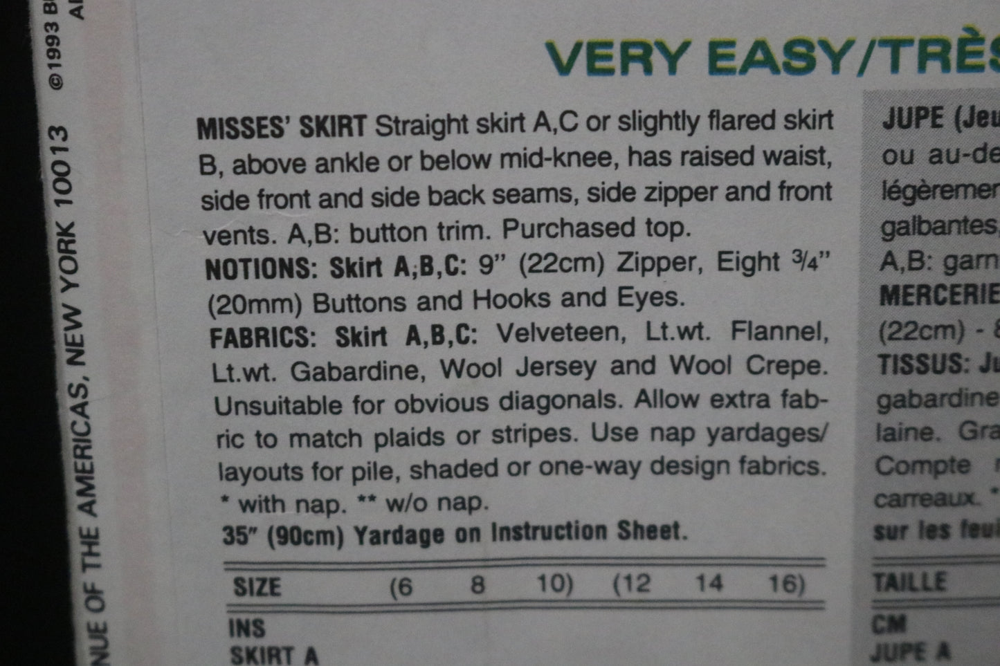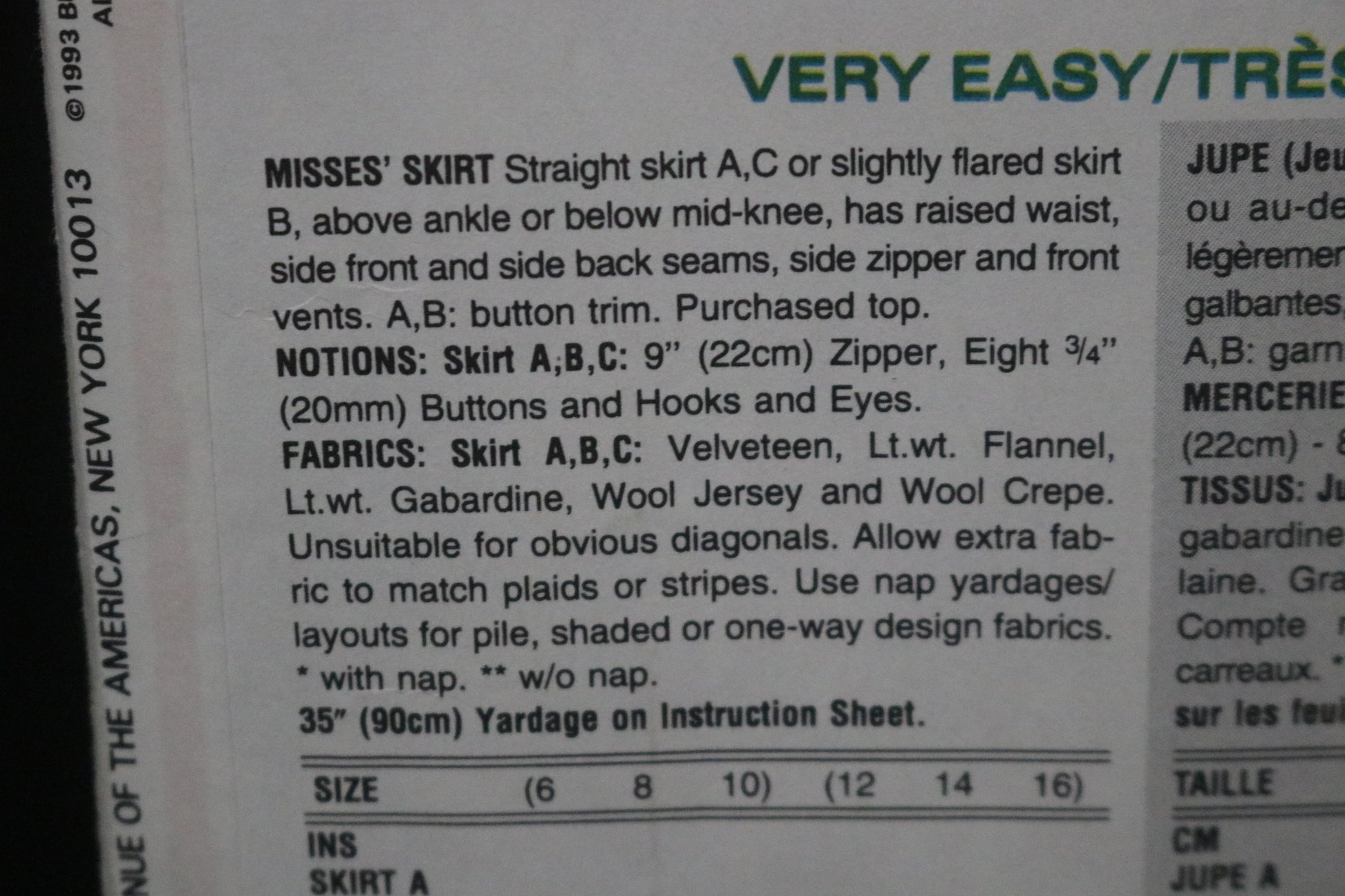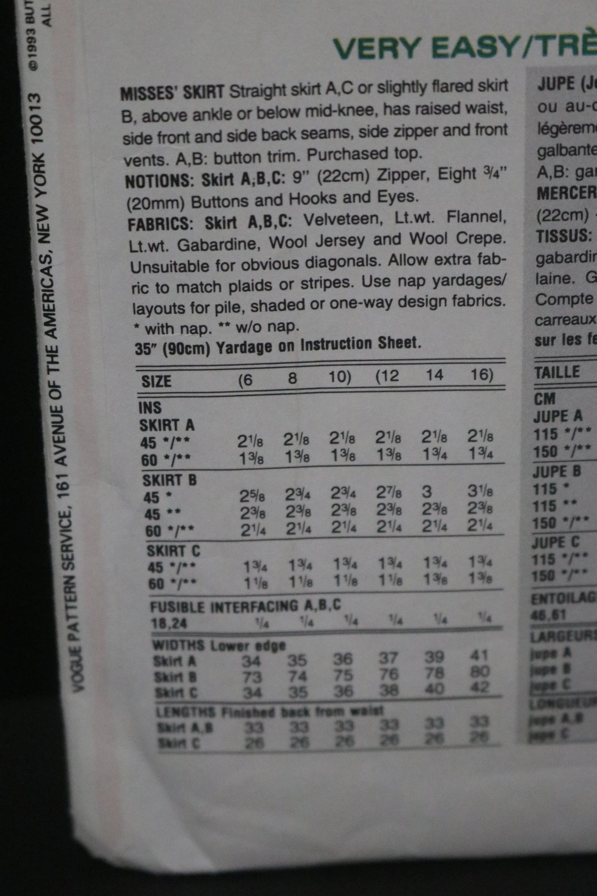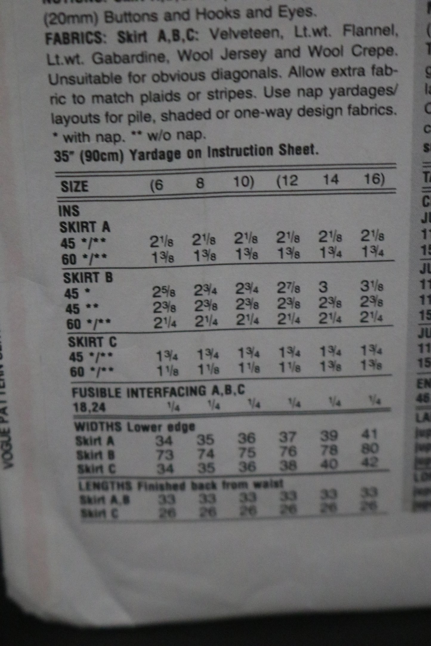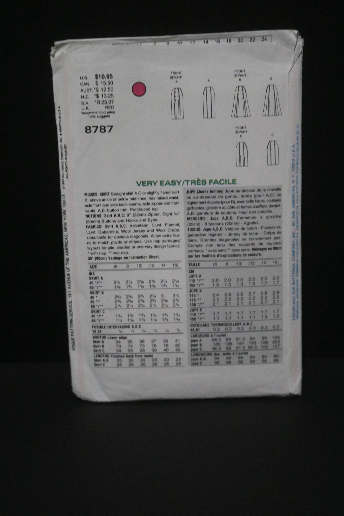 Vogue 8787 Misses Skirt Sewing Pattern - UNCUT - Size 6 8 10