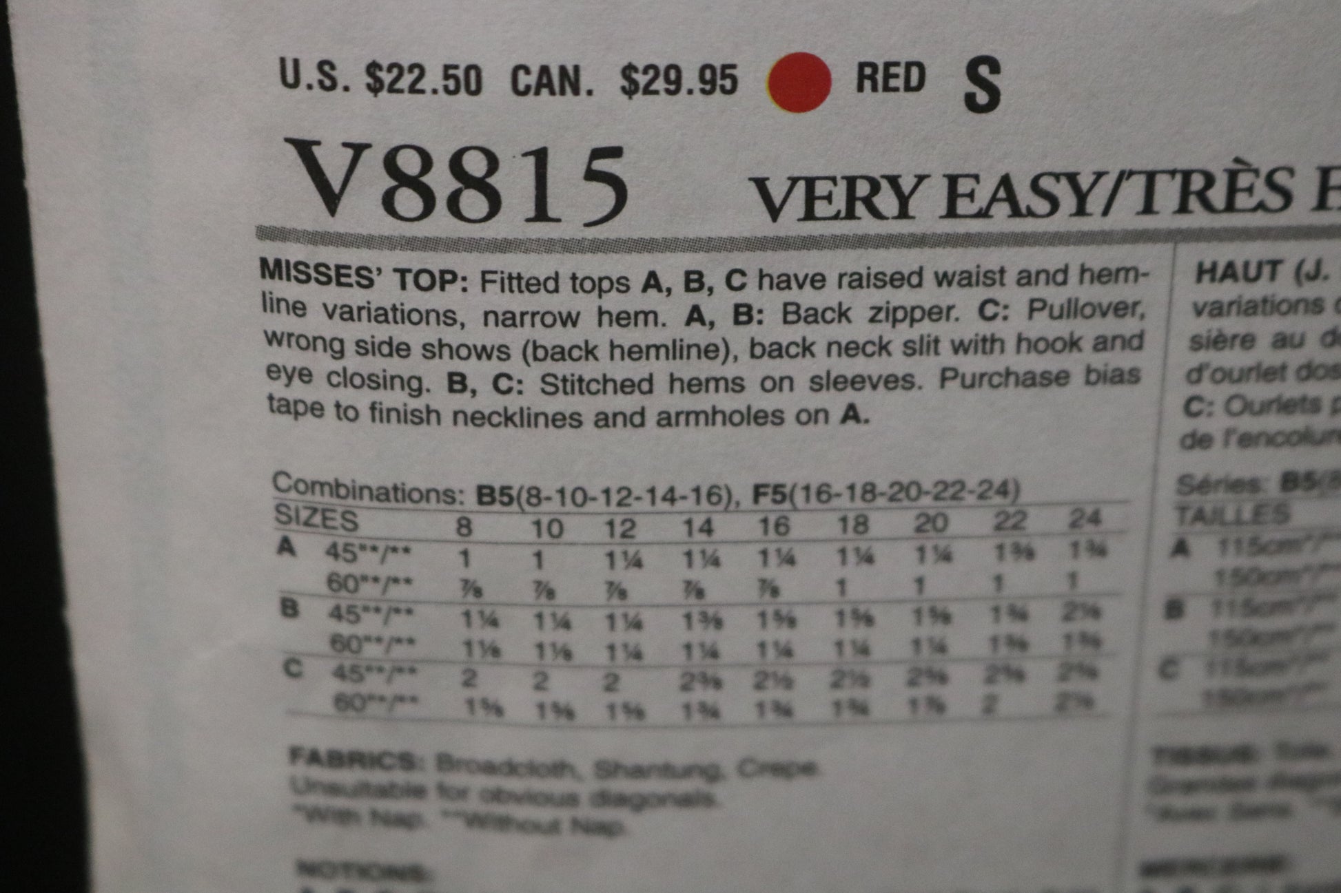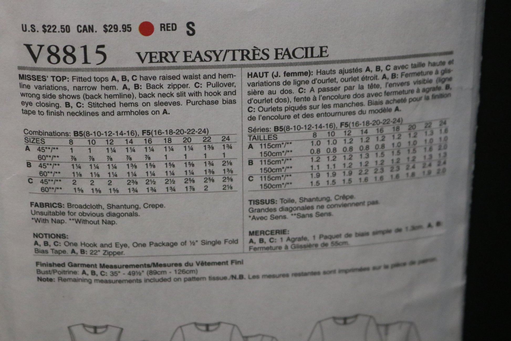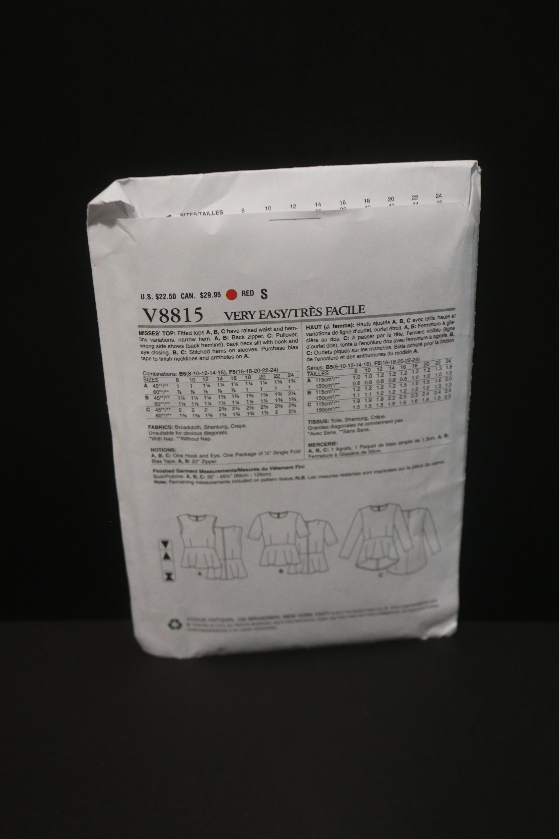 Vogue 8815 Misses Top Sewing Pattern