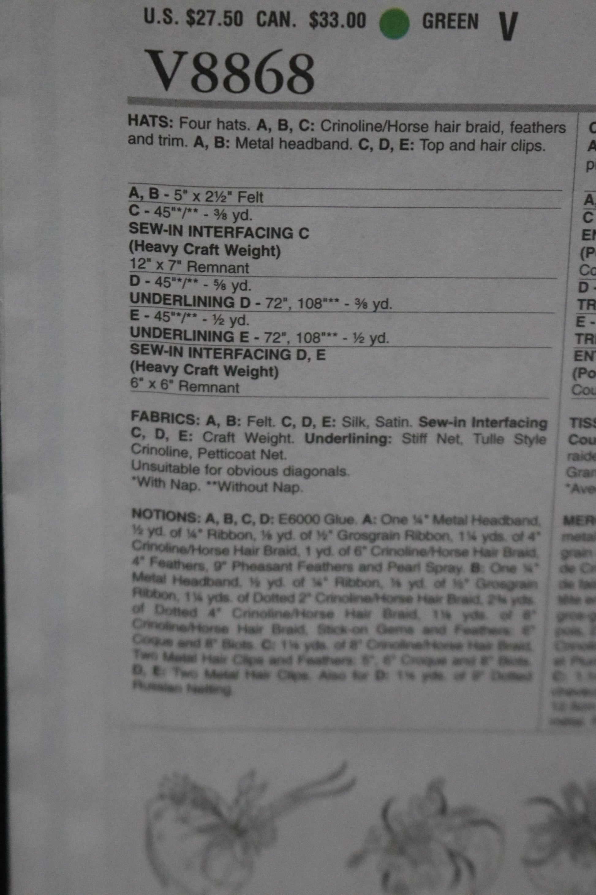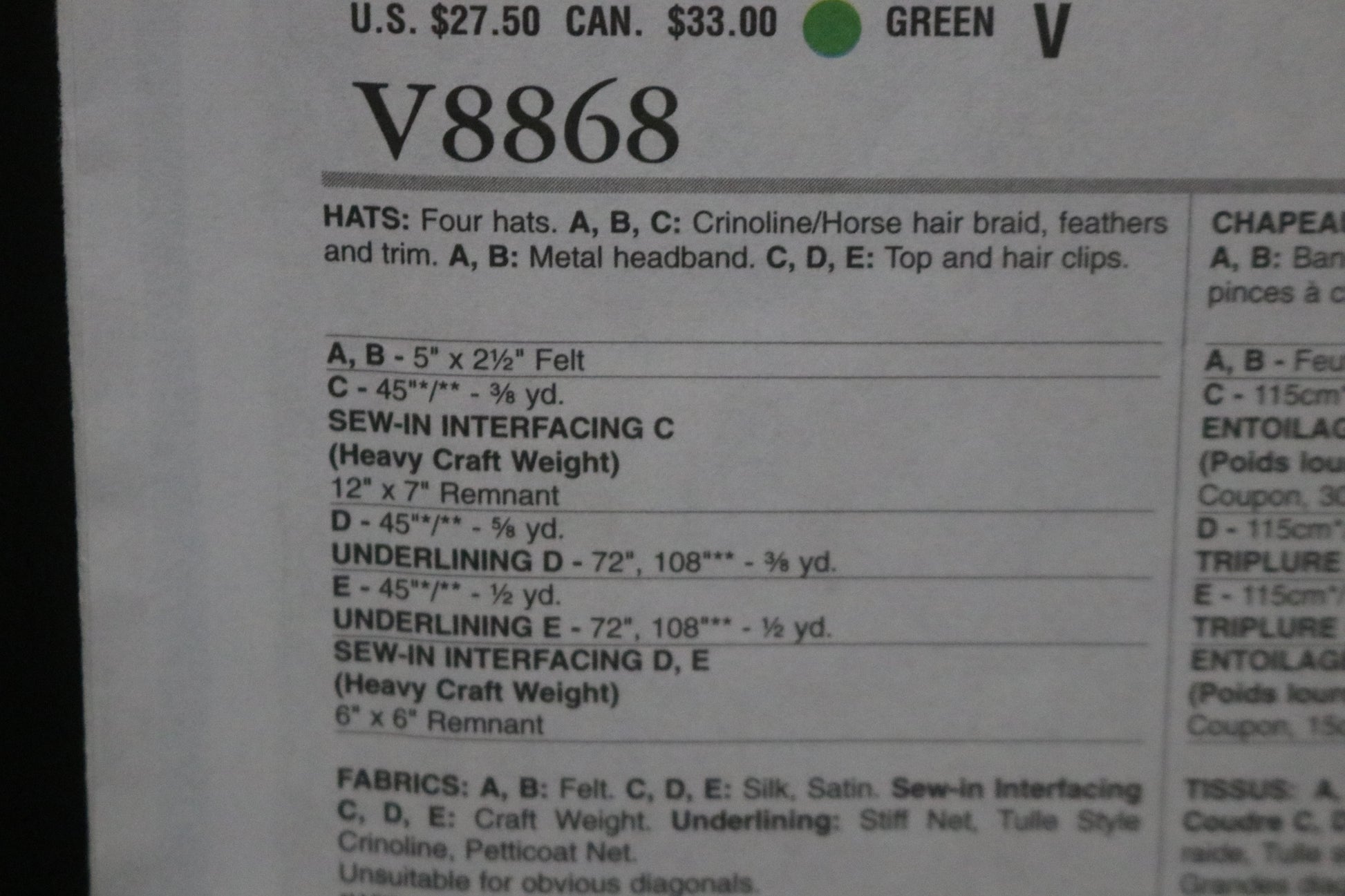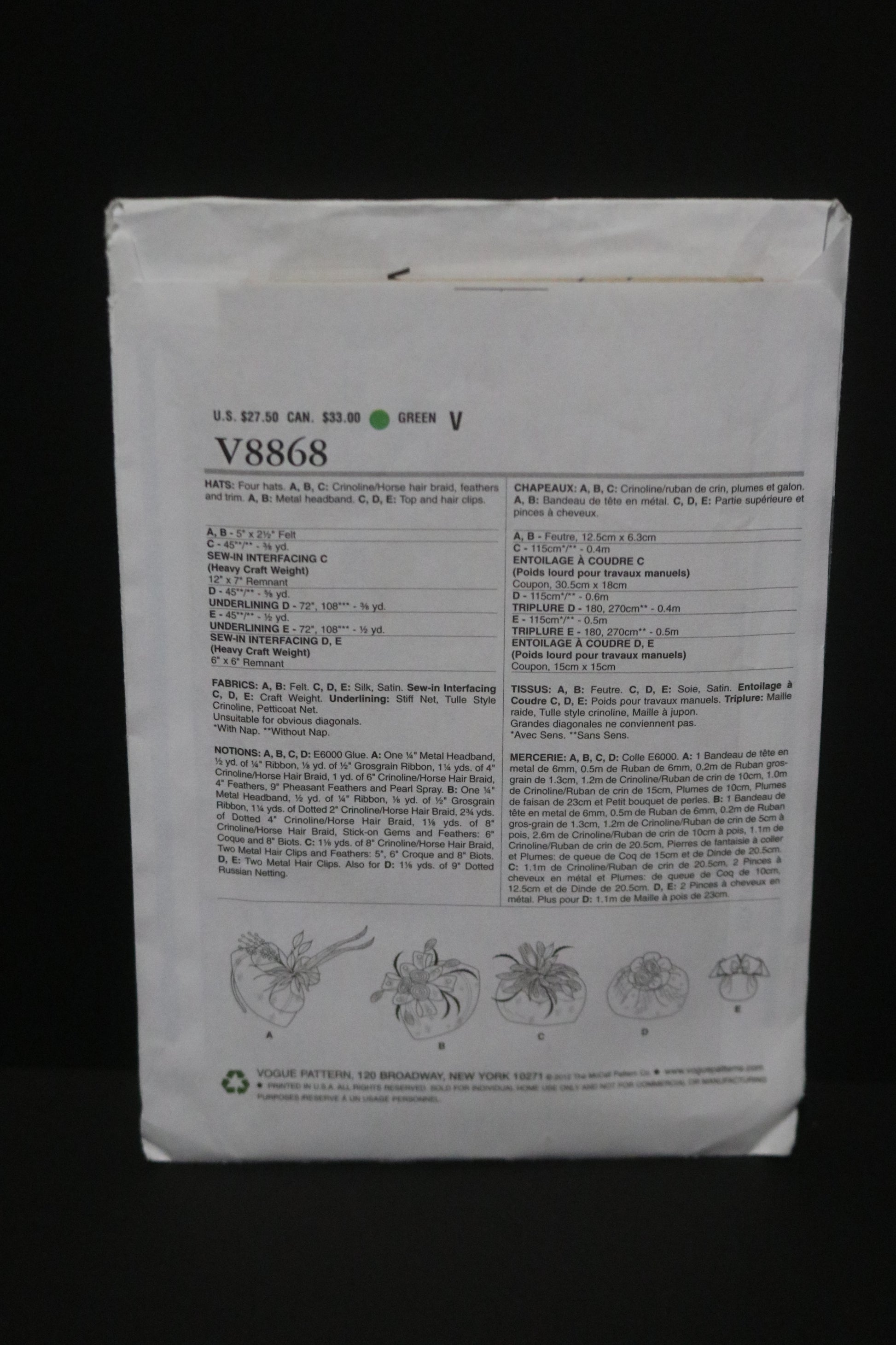 Vogue 8868 Hats Sewing Pattern - UNCUT