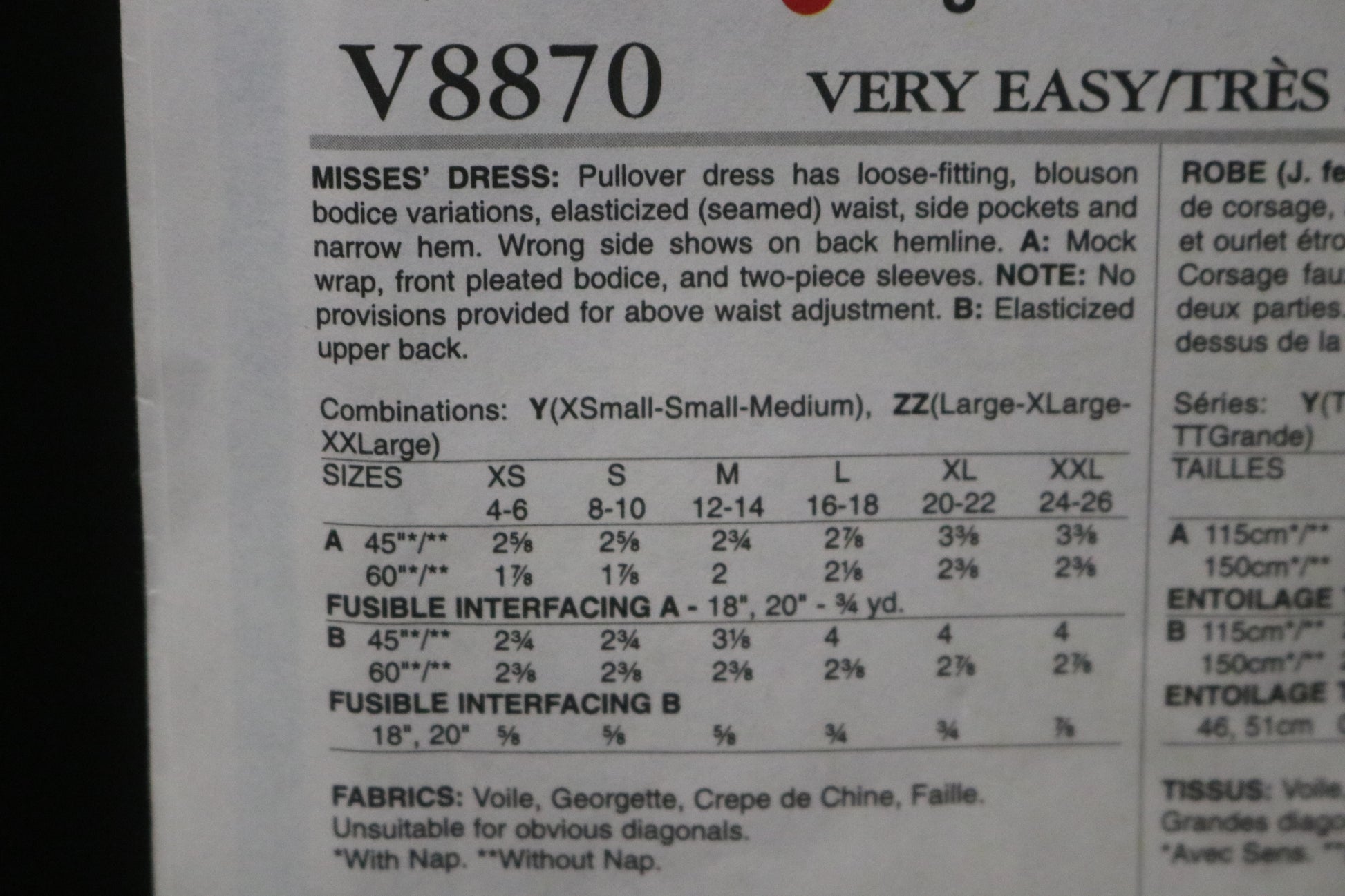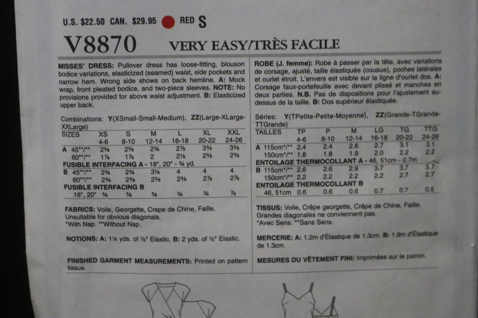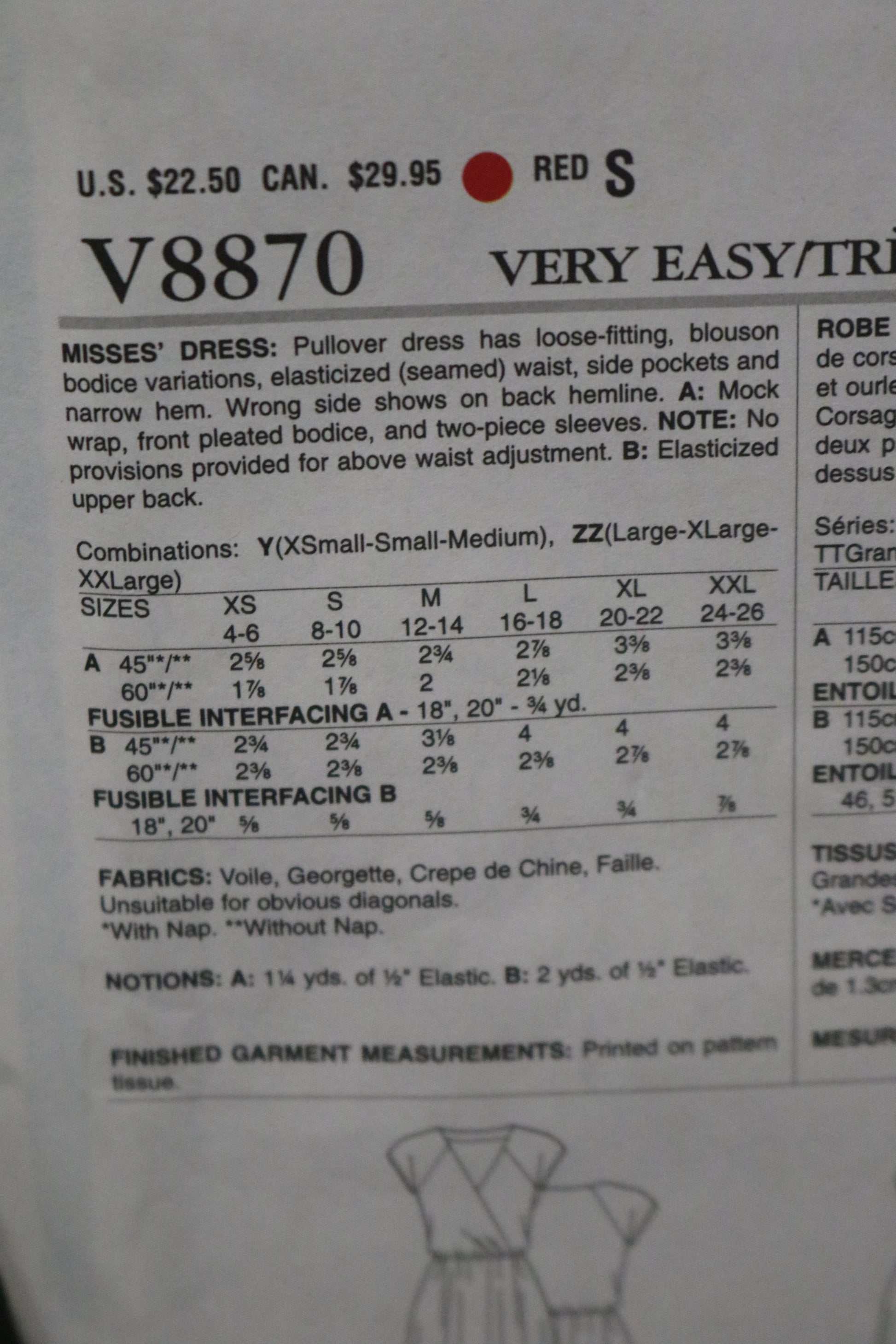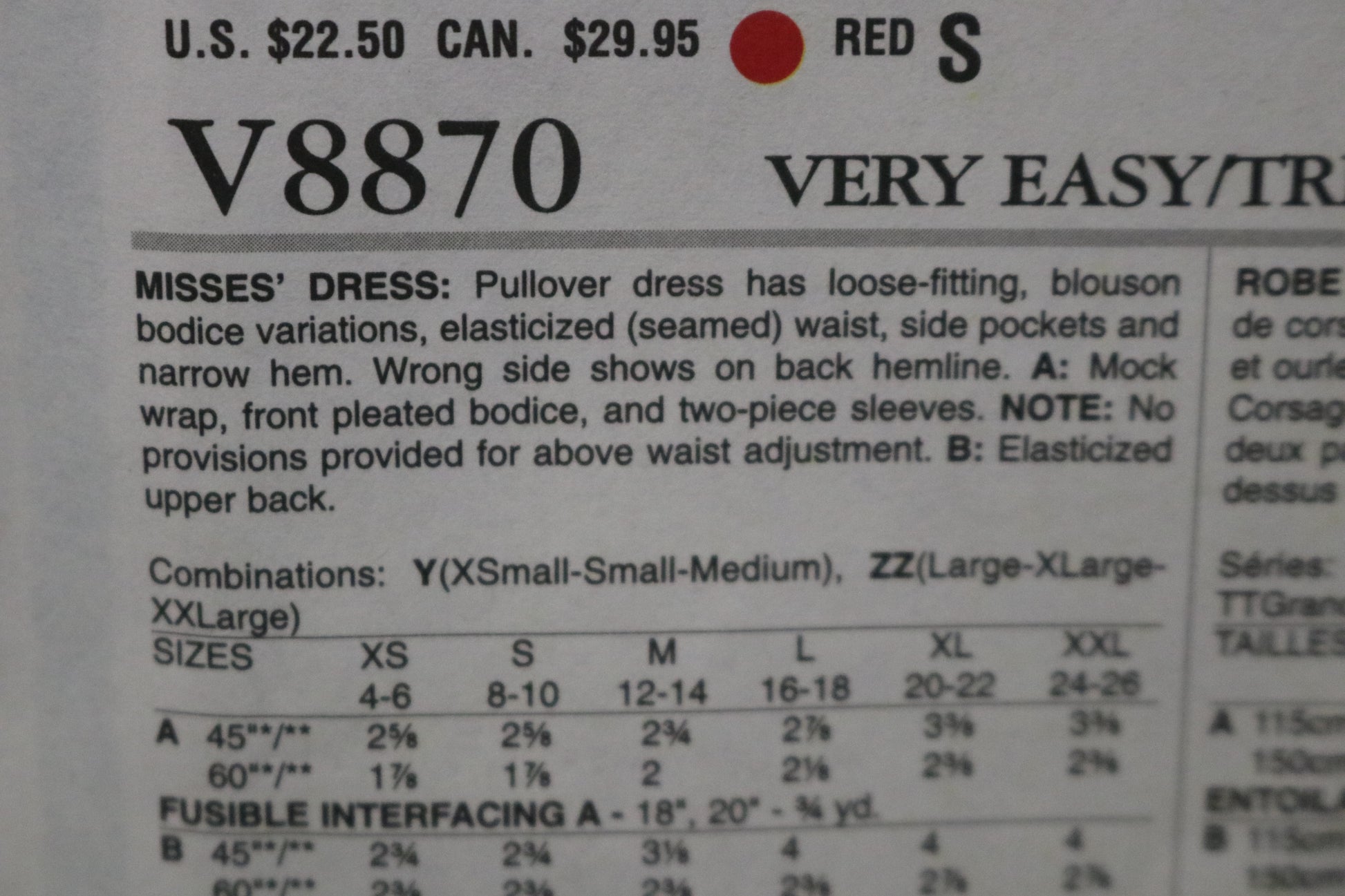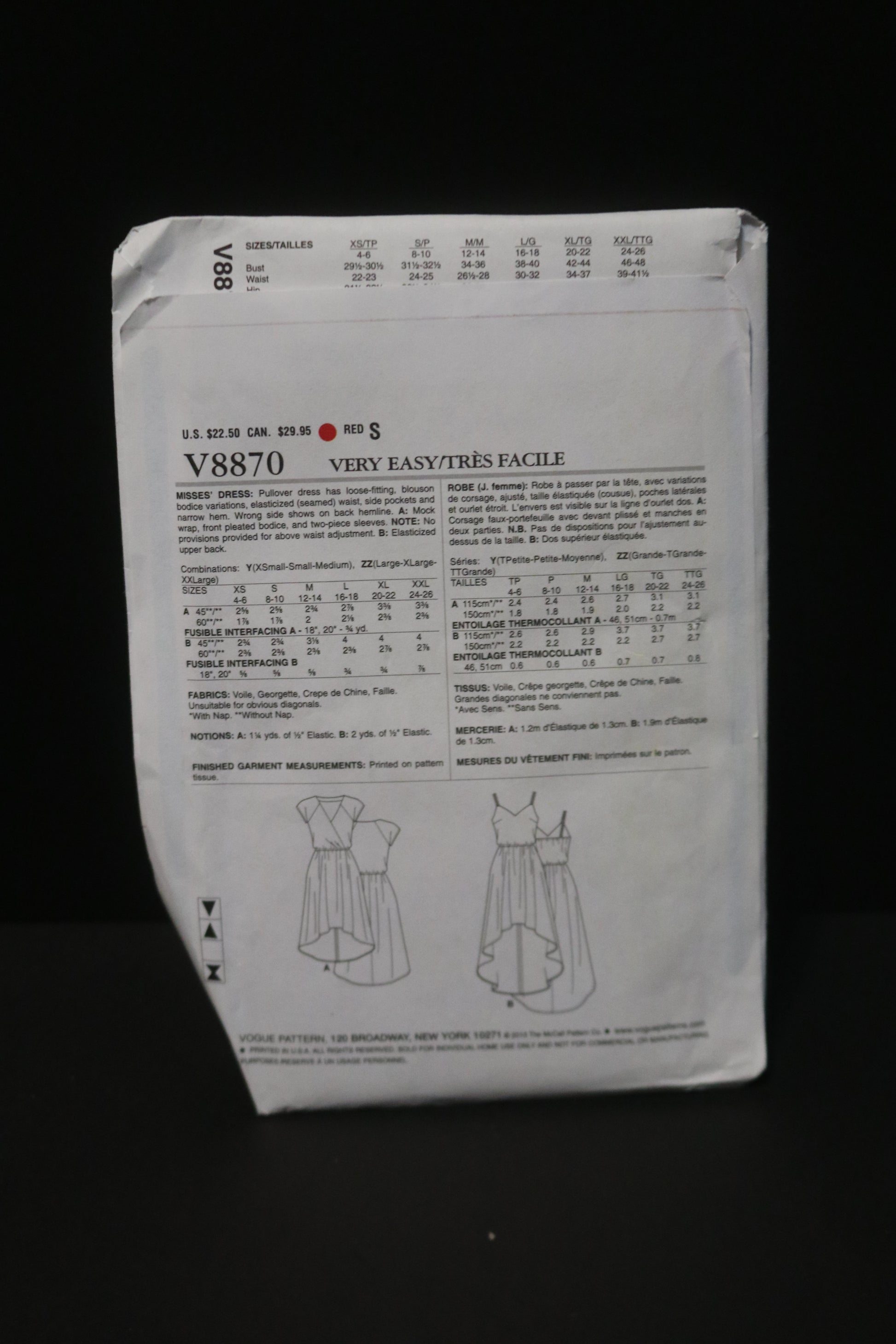 Vogue 8870 Misses Dress Sewing Pattern - UNCUT - Size Lrg Xlg XxL