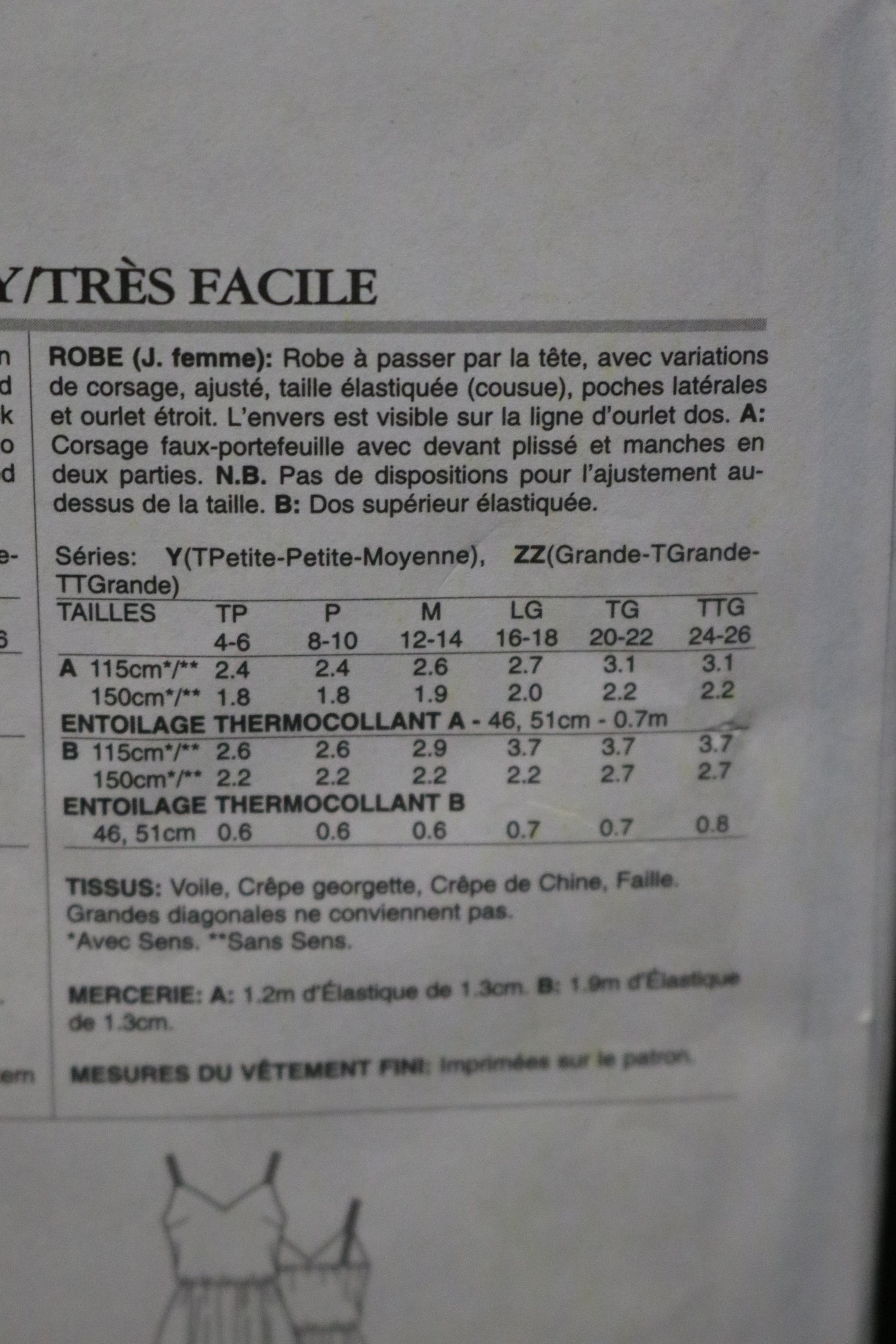 Pullover dress has loose-fitting, blouson bodice variations, elasticized (seamed) waist, side pockets and narrow hem. Wrong side shows on back hemline. A: mock wrap, front pleated bodice, and two-piece sleeves.