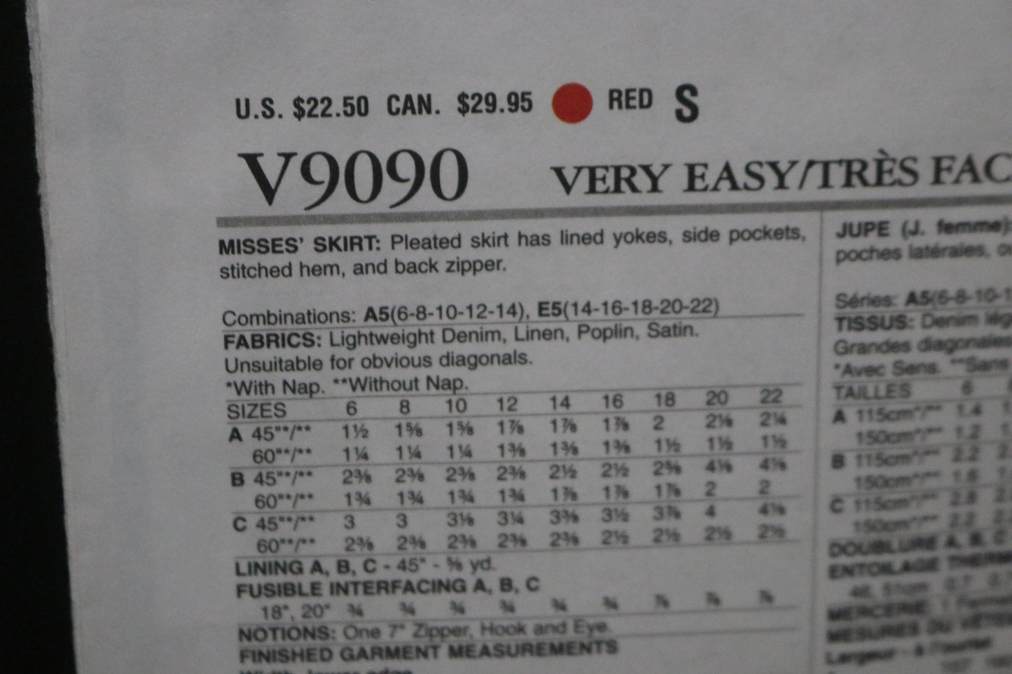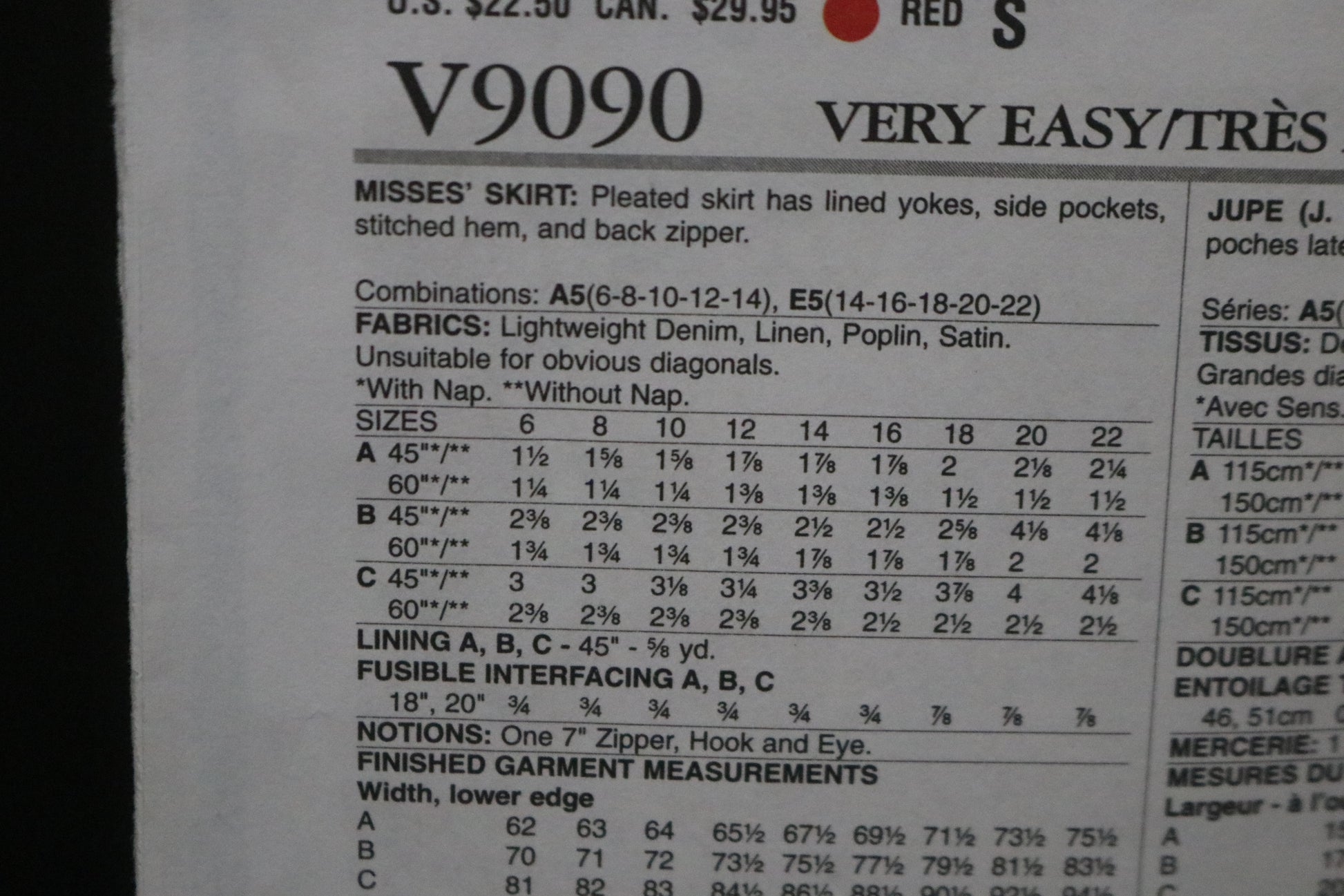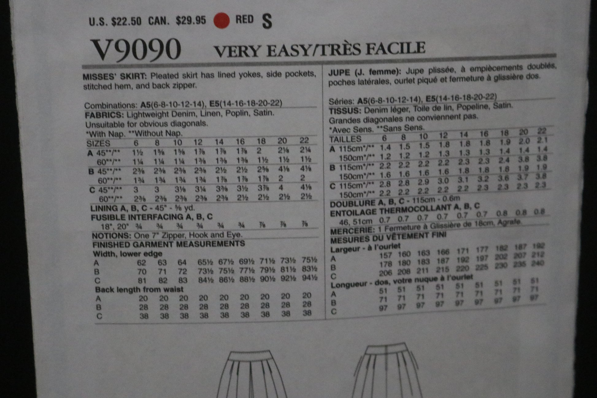 Vogue 9090 Misses Skirt Sewing Pattern - UNCUT - Size 6 8 10 12 14