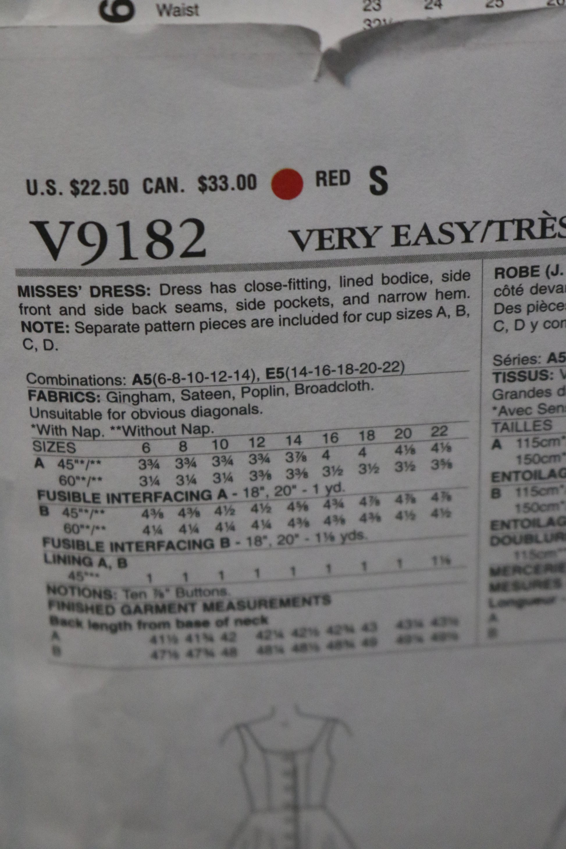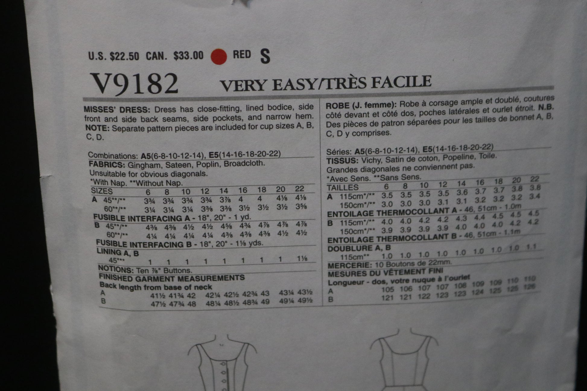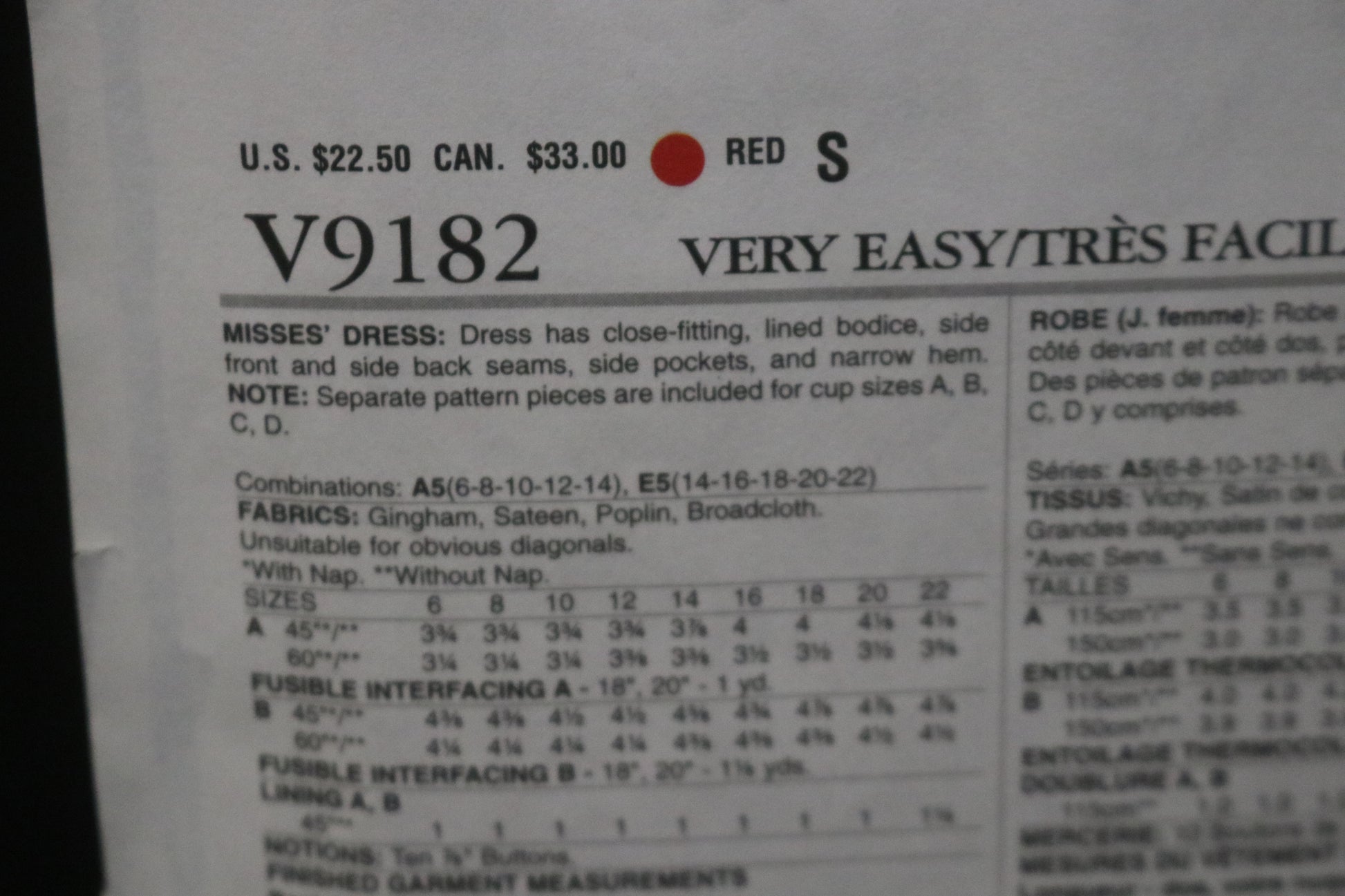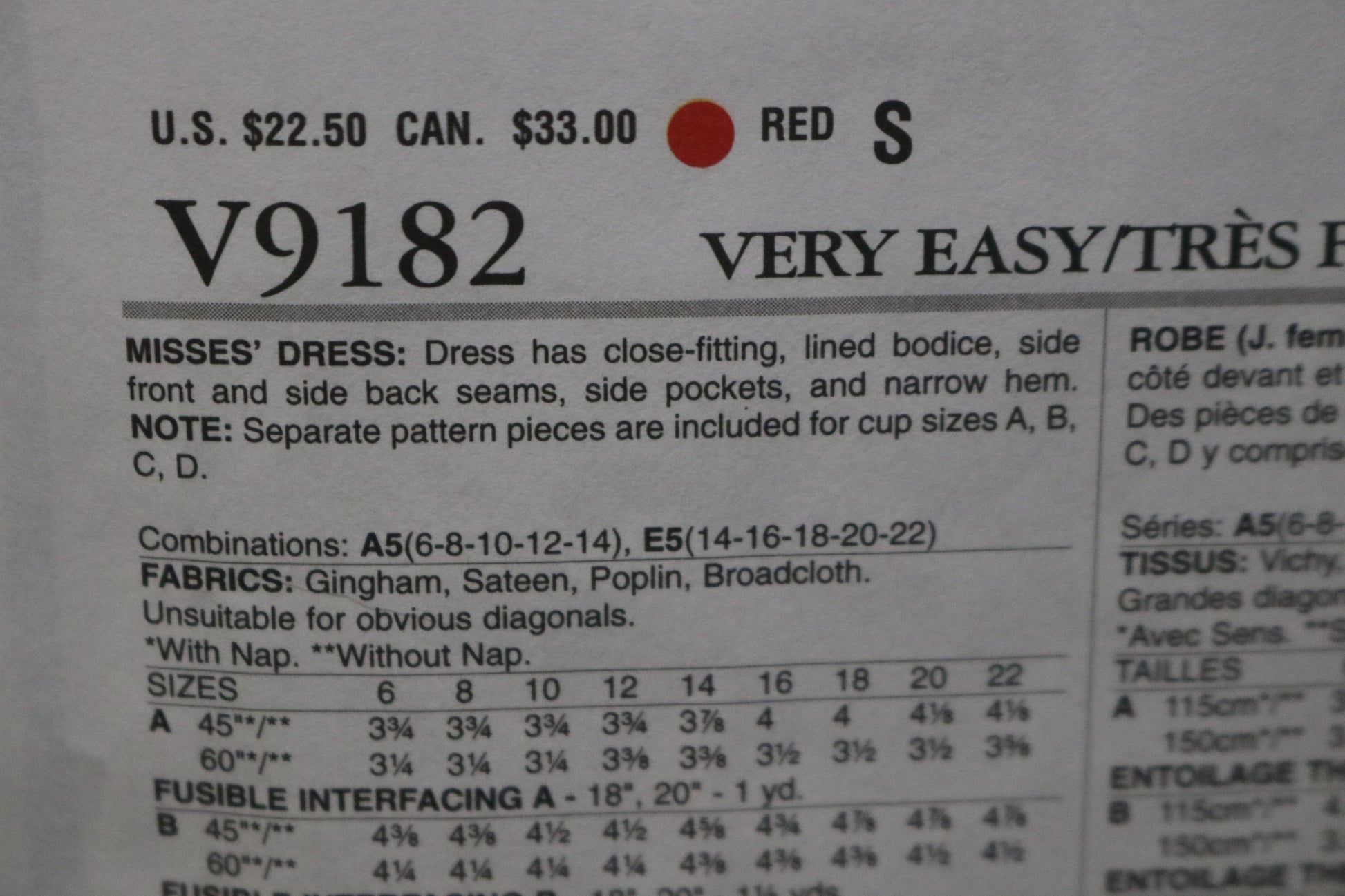 Vogue 9182 Misses Dress Sewing Pattern - UNCUT - Size 6 8 10 12 14