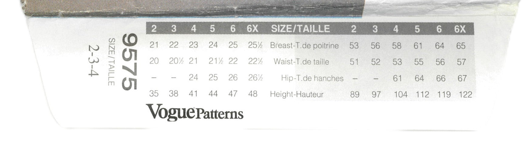 Vogue 9575 Vogue for Me Childrens Girls Coat Sewing Pattern - UNCUT - Size 2 3 4